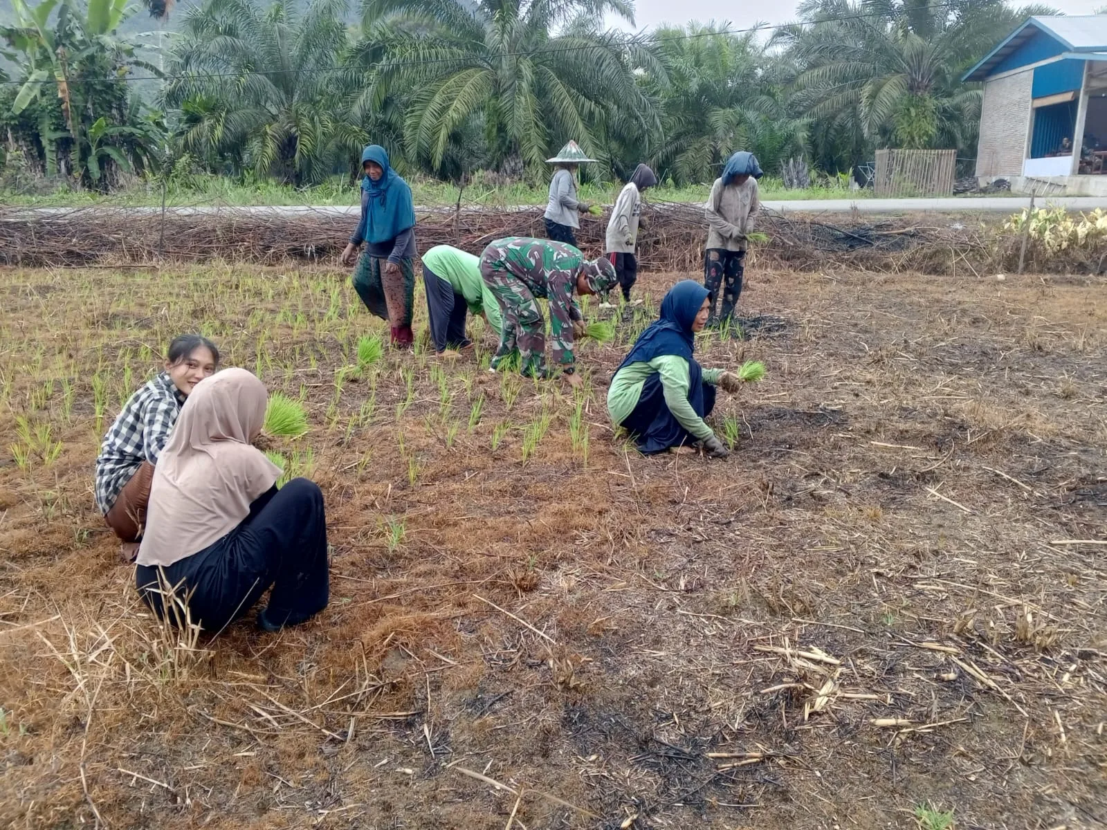 Aceh Selatan – Kepedulian terhadap sektor pertanian kembali ditunjukkan Babinsa Koramil 08/Bakongan Kodim 0107/Aceh Selatan. Kali ini, Babinsa Koptu Budiawan turun ke sawah membantu masyarakat tanam padi di lahan tadah hujan di Desa Alur Duamas Kecamatan Kota Bahagia Kamis (23/10/2025).