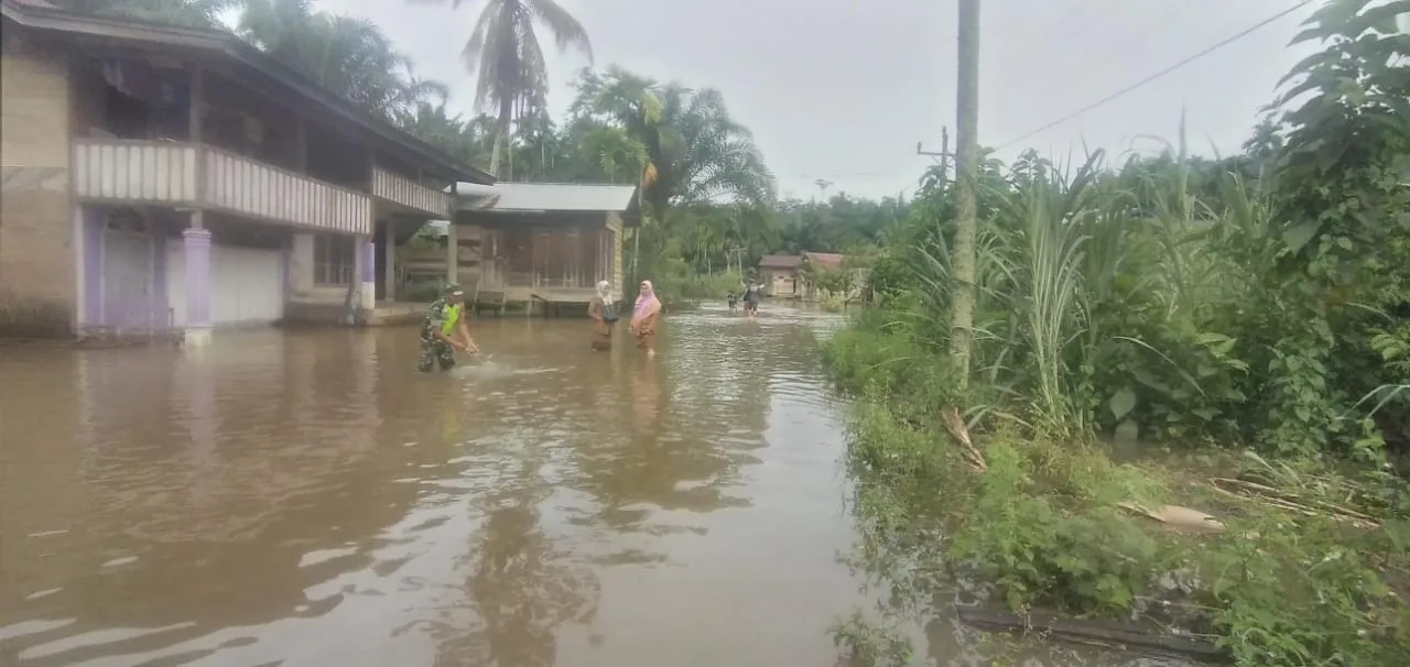 Aceh Selatan – Babinsa Koramil 08/Bakongan bergerak cepat memonitor serta membantu warga terdampak banjir yang terjadi di Desa Beutong, Kecamatan Kota Bahagia, Kabupaten Aceh Selatan, Selasa (18/11/2025).