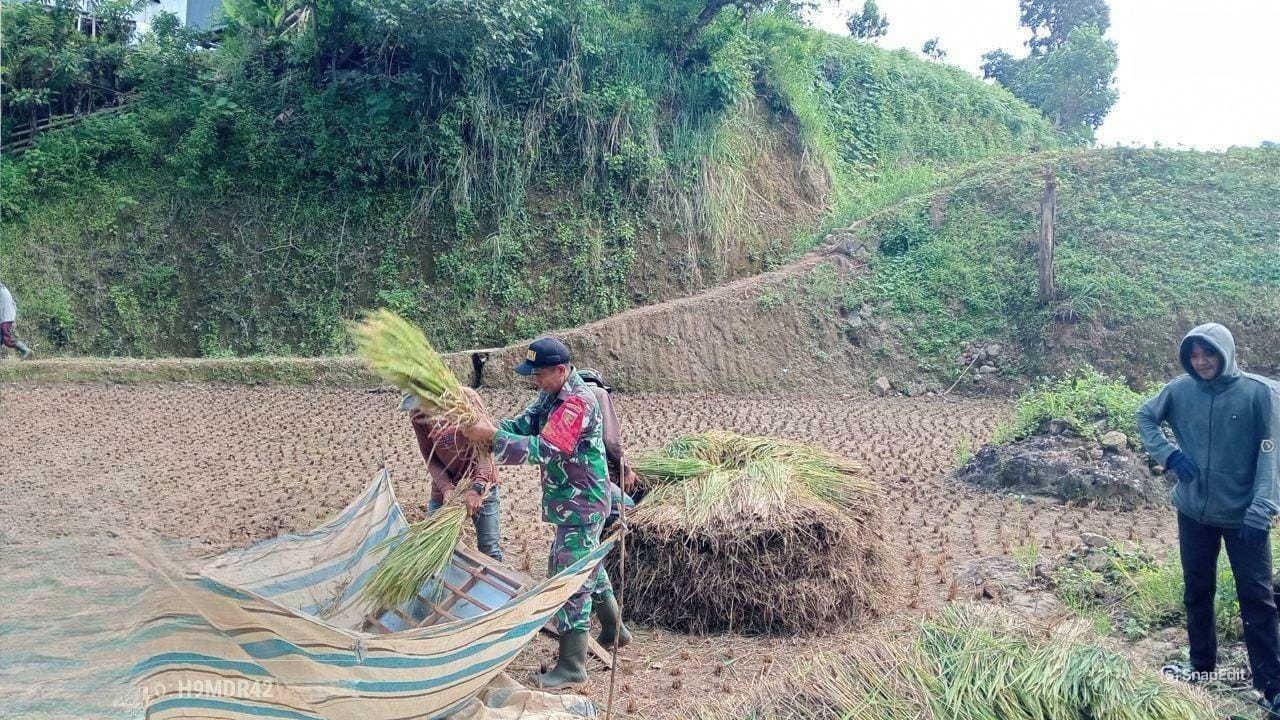 “Walaupun panas terik matahari tidak menyurutkan semangat Bapak Babinsa melakukan pendampingan panen padi kepada kami” ucap Bapak Jemmaing