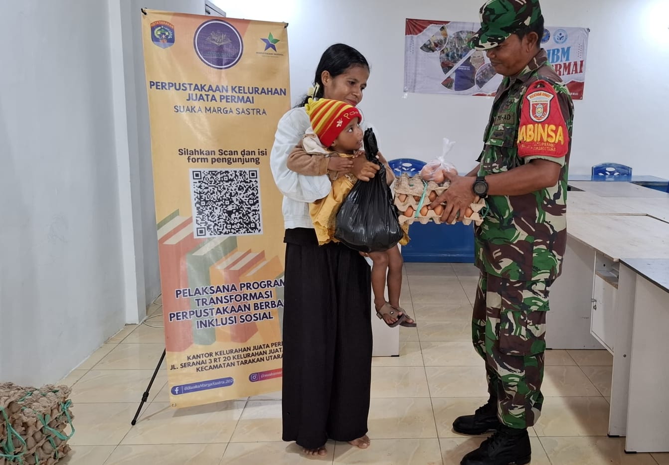 Tarakan – Wujud kepedulian terhadap perkembangan Anak Stunting terus dilakukan Babinsa Jajaran Kodim 0907/Trk bersama instansi terkait.