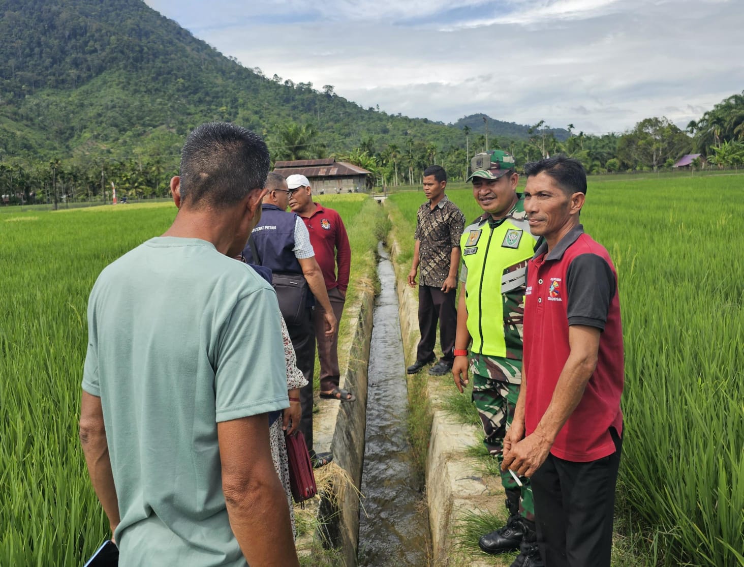 ACEH SELATAN – Dalam rangka mendukung program ketahanan pangan nasional, Babinsa Koramil 13/Kluet Timur Kodim 0107/Aceh Selatan Sertu Zainal Amri bersama Petugas Penyuluh Lapangan (PPL) pertanian, melakukan pendampingan dan pemantauan langsung ke sawah milik petani di wilayah Kecamatan Kluet Timur, Kabupaten Aceh Selatan, Jumat (08/8/2025).