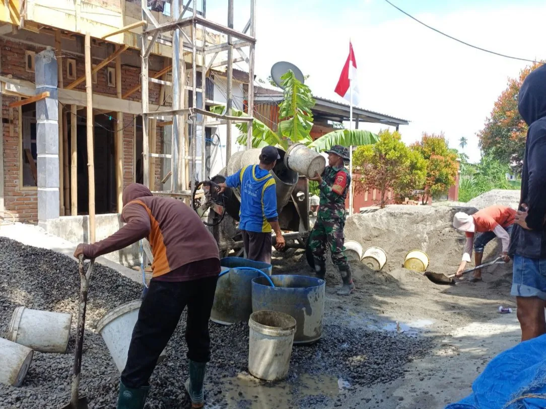Pinrang_ Sebagai bentuk kepedulian serta upaya membangkitkan semangat gotong royong di tengah masyarakat, Babinsa Koramil 1404-04/Paleteang Kodim 1404/Pinrang Serda Abdul Rasyid melaksanakan kerja bakti bersama warga membantu proses pengecoran rumah milik salah satu warga di Lingkungan Sekkang Kelurahan Bentengnge Kecamatan Paleteang Kabupaten Pinrang, Kamis (29/01/2026).