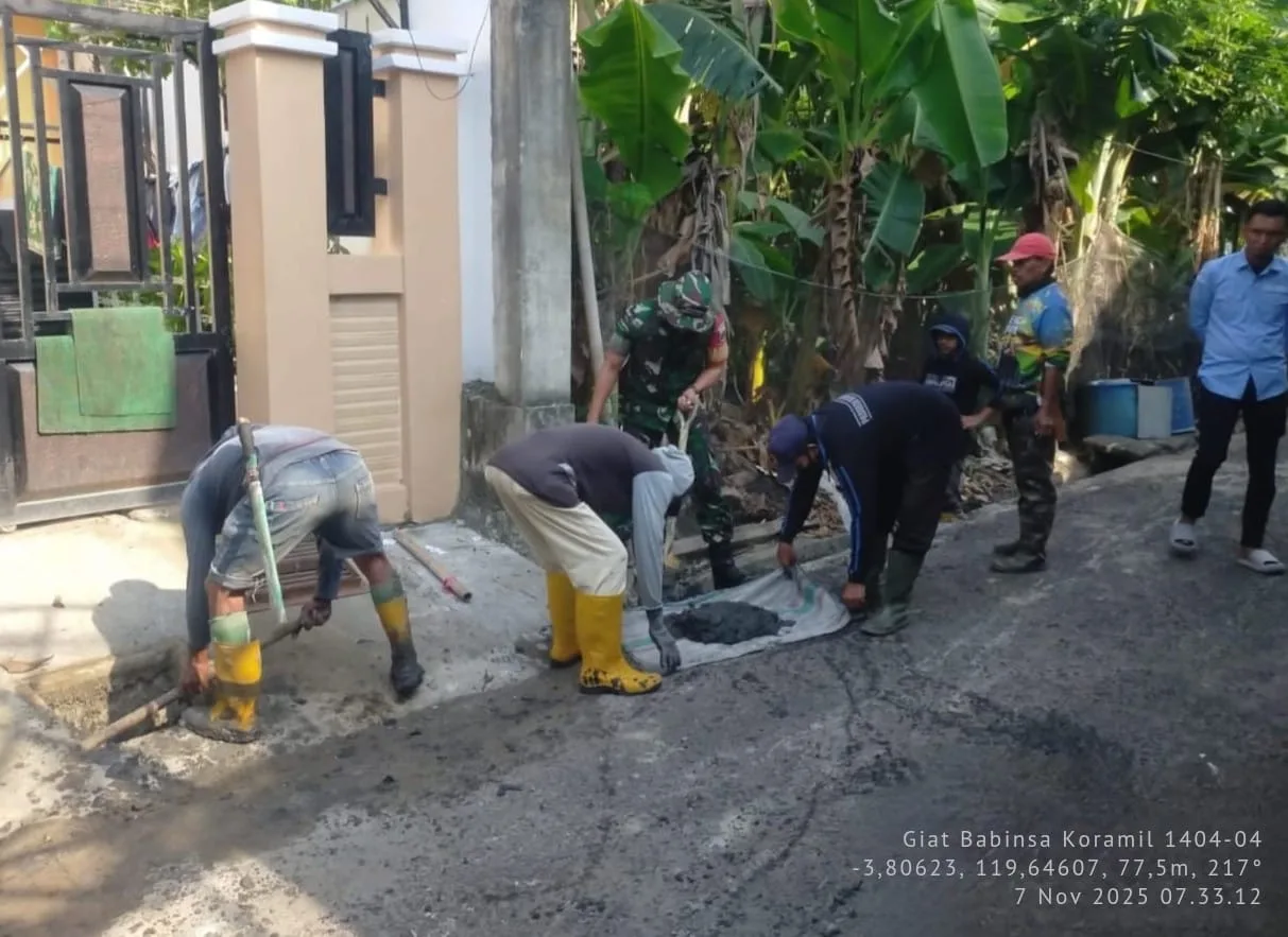 Pinrang_ Dalam upaya menjaga kebersihan lingkungan dan kelancaran saluran air, Babinsa Koramil 1404-04/Paleteang Kodim 1404/Pinrang bersama warga melaksanakan kegiatan kerja bakti pembersihan selokan sepanjang 150 meter di Lingkungan Palia, Kelurahan Macinnae, Kecamatan Paleteang, Kabupaten Pinrang, Jum’at (07/11/2025).