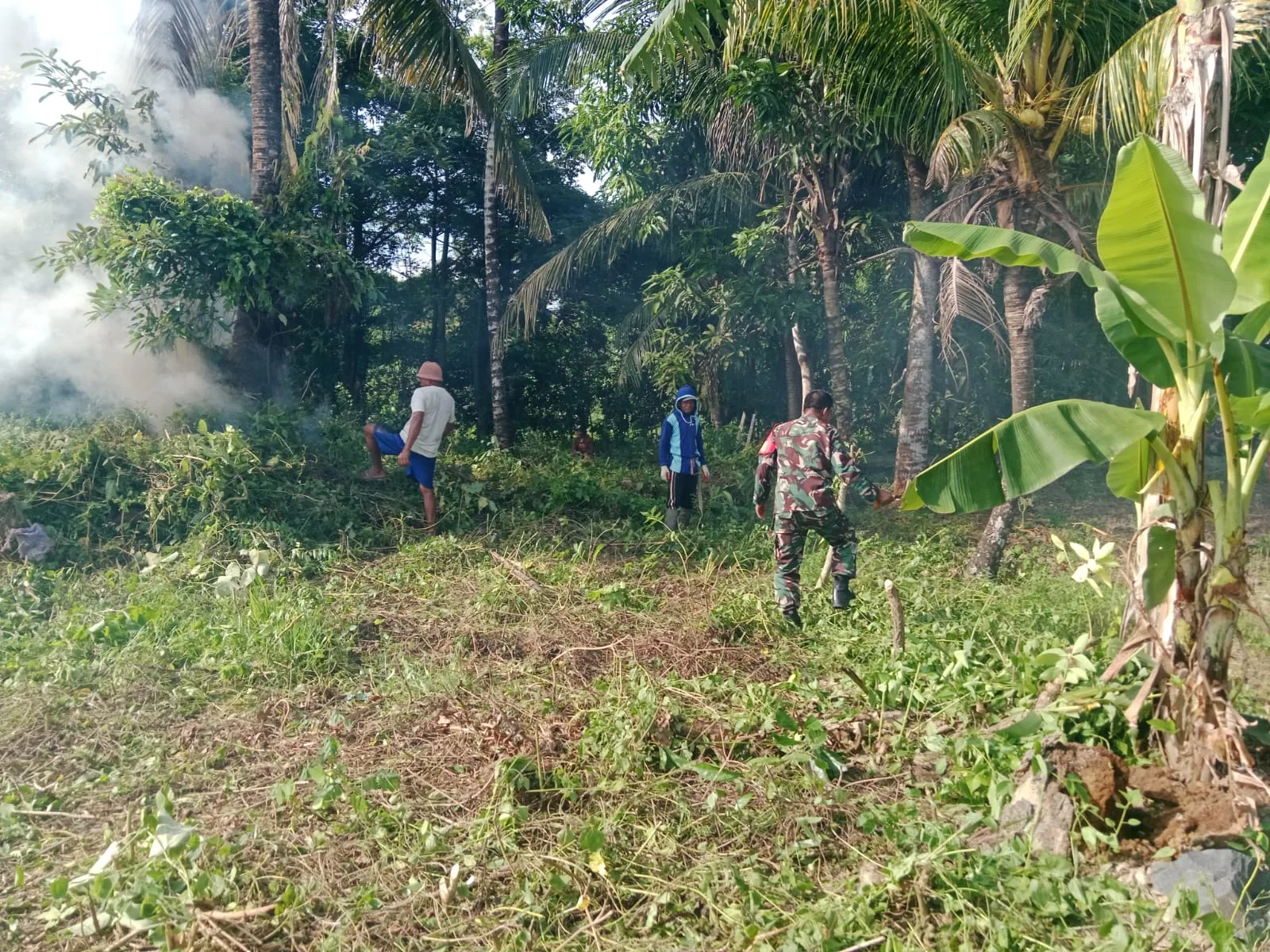 Dalam kegiatan tersebut, Babinsa bersama warga membersihkan rumput liar, sampah, dan material lain yang dapat menghambat proses pembangunan.