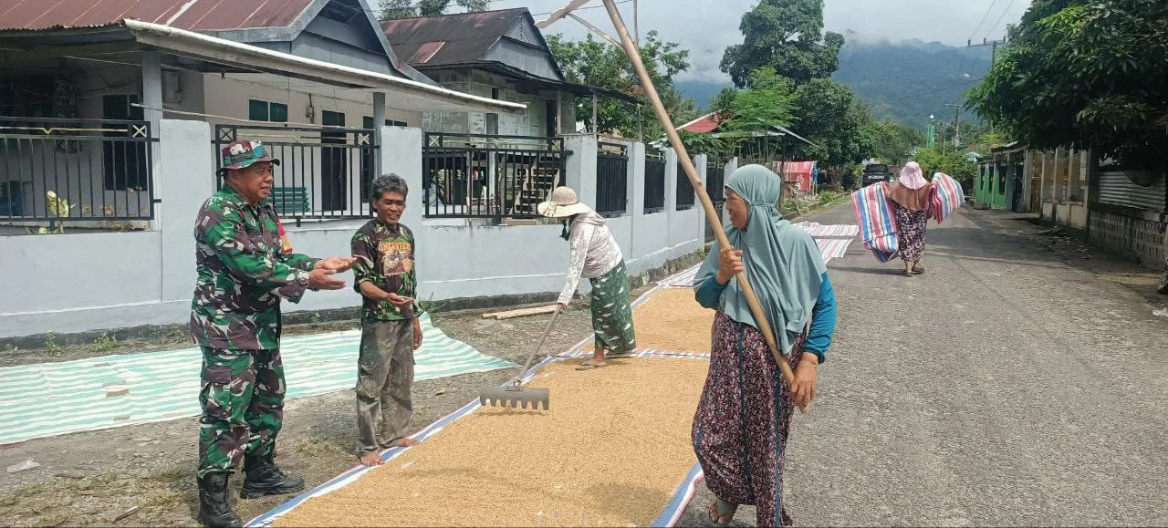 Babinsa Pelda Muhammad Hatta menyampaikan pentingnya menjaga kualitas gabah saat proses penjemuran agar hasil panen tetap terjaga dan memiliki nilai jual yang baik. Selain itu, Babinsa juga mengimbau warga untuk selalu menjaga kebersihan lingkungan sekitar serta memperhatikan faktor keamanan saat beraktivitas di luar rumah.