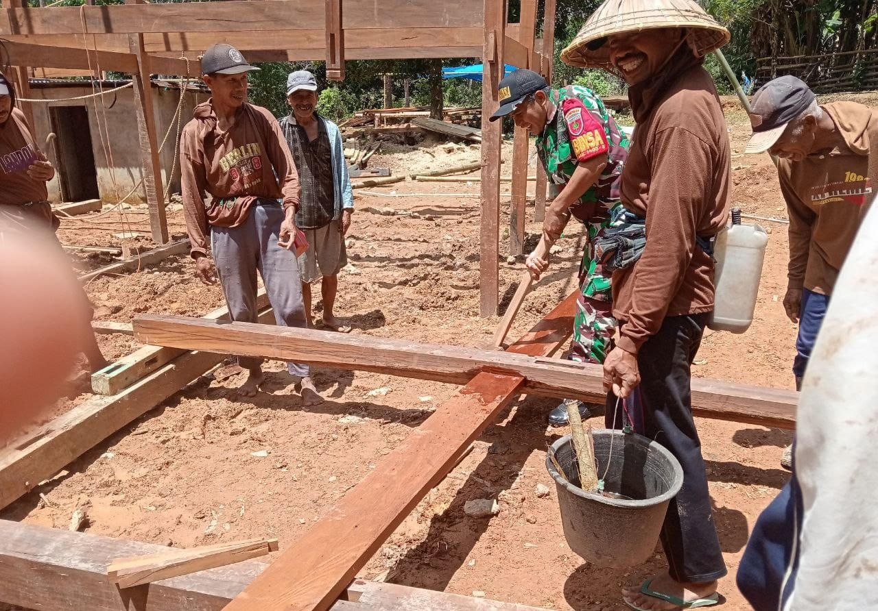 KODIM 1405/PAREPARE – Semangat kebersamaan dan budaya gotong royong masih terus dijaga oleh warga Desa Bacu Bacu, Kecamatan Pujananting, Kabupaten Barru. Babinsa Koramil 1405-08/Tanete Riaja Sertu Asri dan warga masyarakat secara bersama-sama membangun rumah panggung, sebuah bangunan tradisional khas Bugis Makassar yang hingga kini masih lestari. Jum’at (12/09/2025)