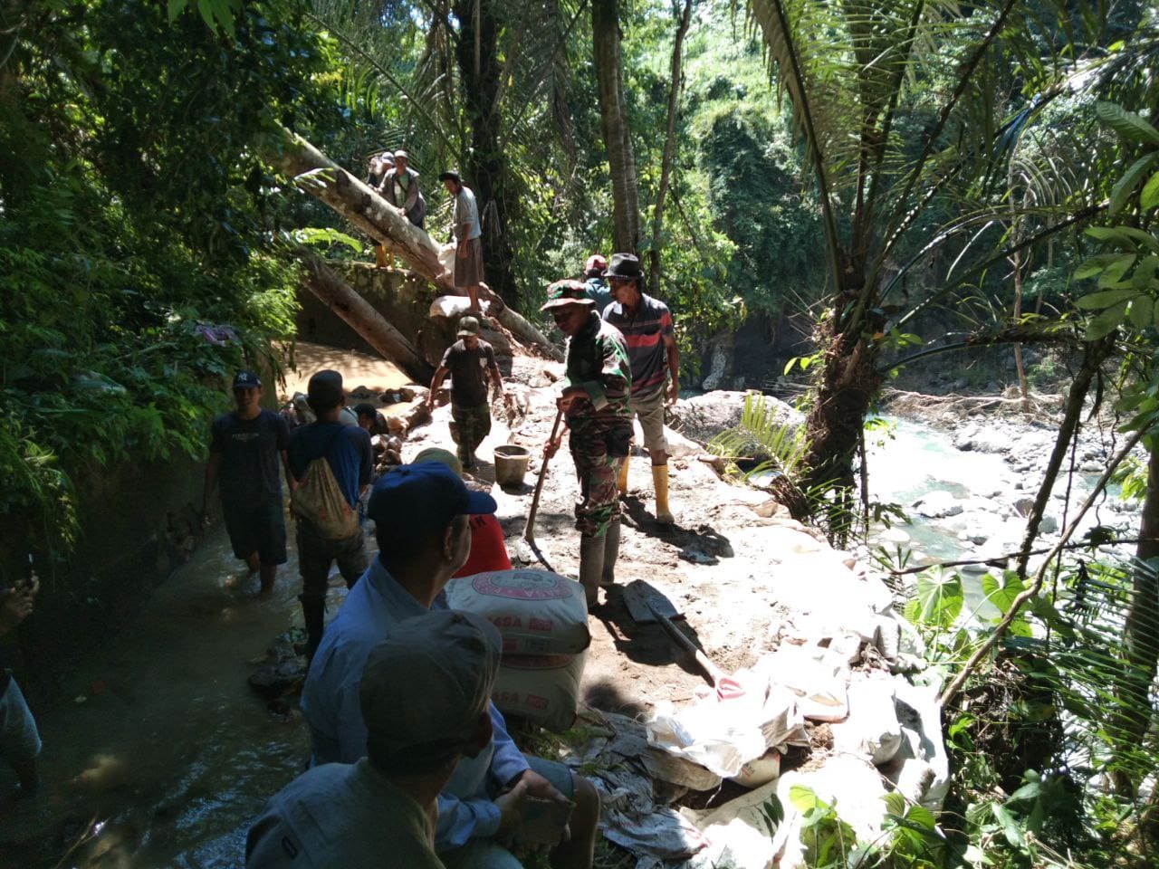 BABINSA KORAMIL 1424-05/SINJAI SELATAN BERSAMA WARGA LAKSANAKAN KERJA BAKTI PERBAIKI HULU IRIGASI