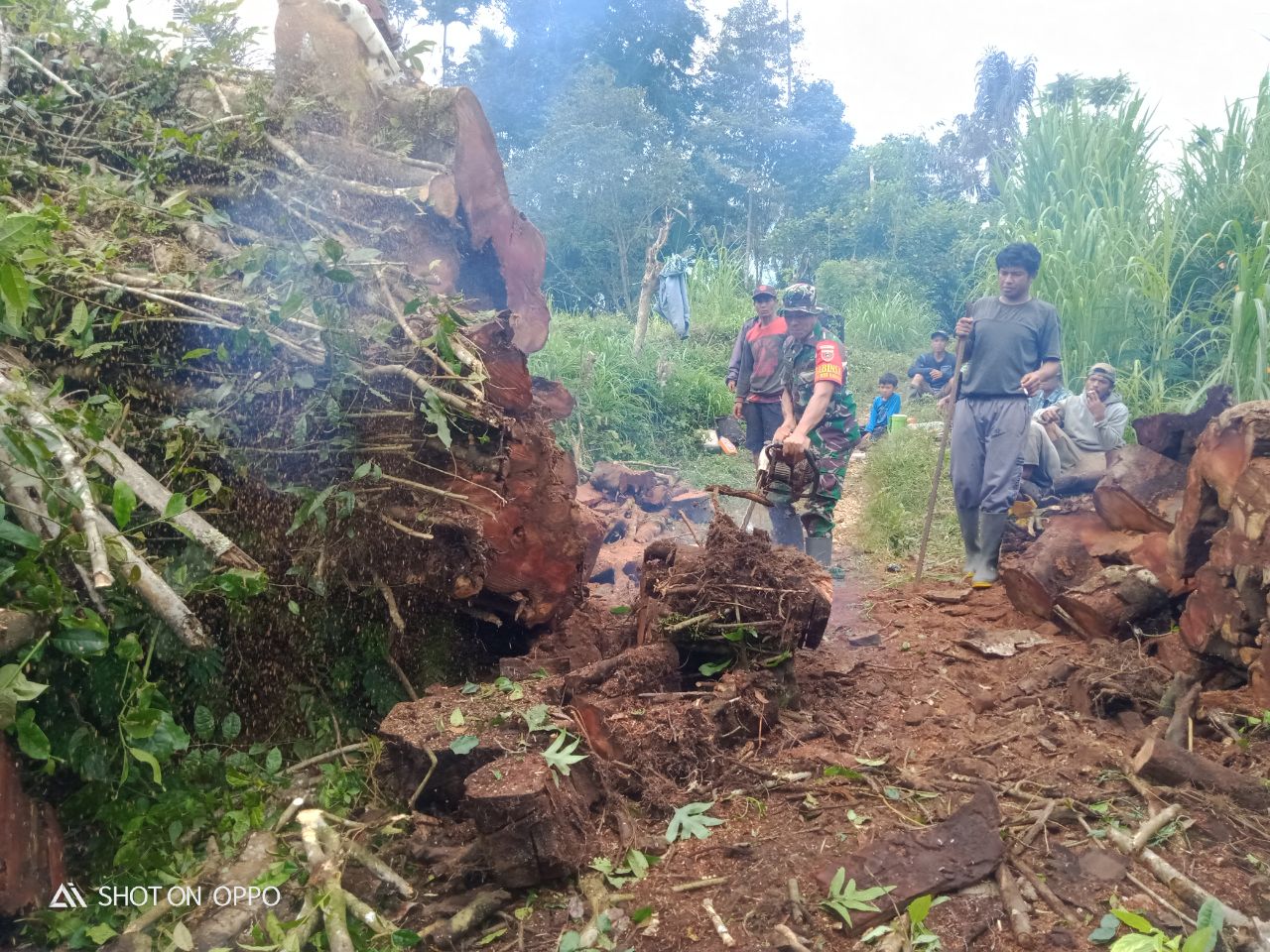 Selain fokus pada penanganan pohon tumbang, kegiatan ini juga menyasar pada kebersihan lingkungan sekitar. Masyarakat bersama aparat desa dan Babinsa turut membersihkan semak belukar dan saluran air agar kondisi lingkungan tetap terpelihara dengan baik, nyaman, dan sehat.