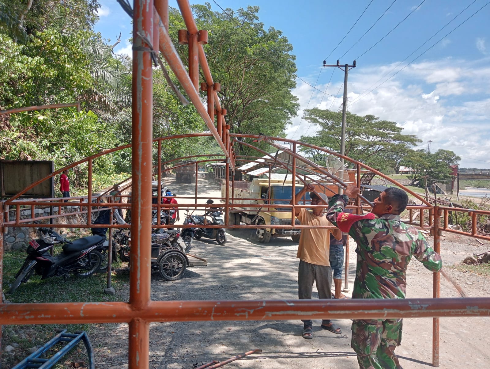 Babinsa Koramil 15/Tiro Bantu Warga Dirikan Tenda Kenduri, Wujud Kebersamaan TNI-Rakyat