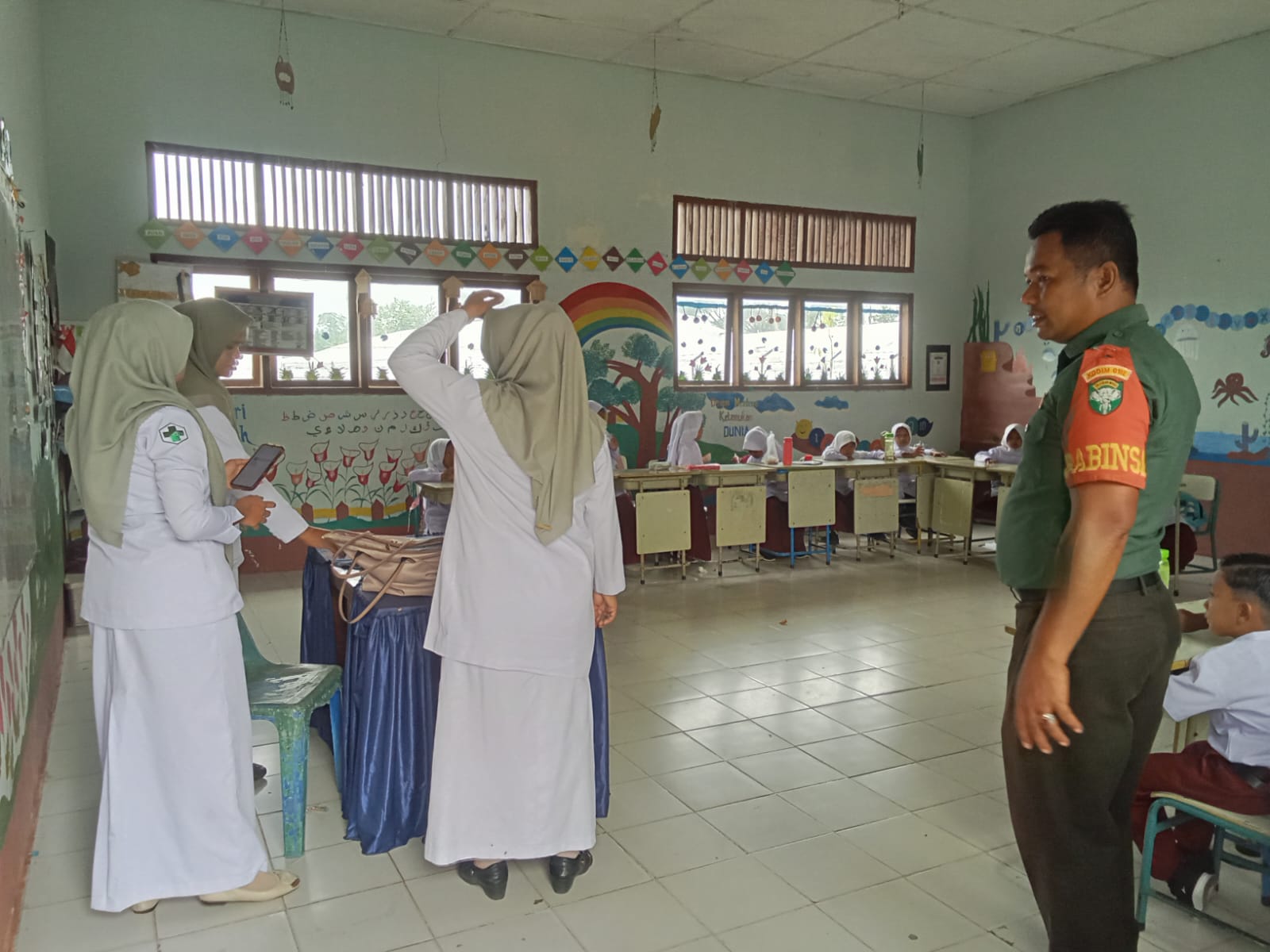Dalam pelaksanaannya, Babinsa turut membantu memastikan kelancaran kegiatan serta memberikan motivasi kepada siswa agar tidak takut saat menerima imunisasi.