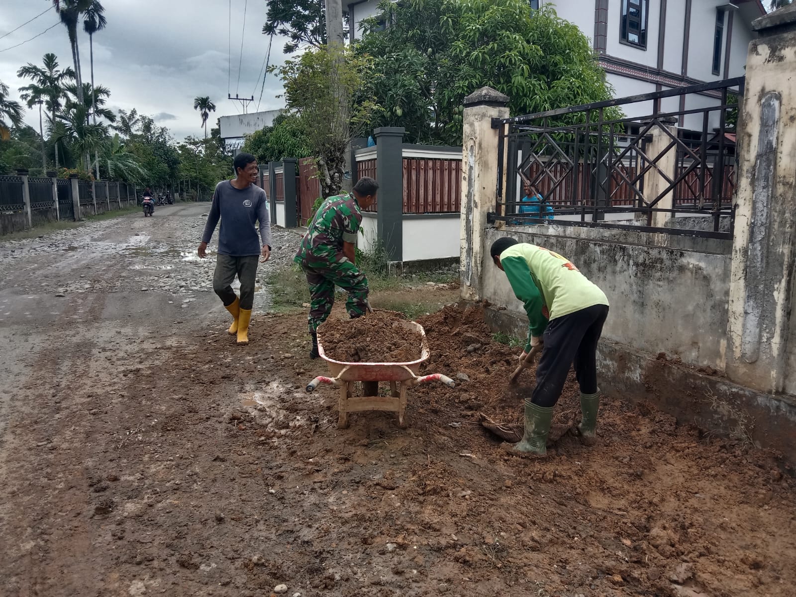 Selain membersihkan jalan, gotong-royong ini juga menjadi sarana silaturahmi antarwarga dan aparat TNI di desa. Suasana penuh keakraban terlihat dari cara masyarakat bekerja bahu-membahu tanpa sekat, mencerminkan nilai persatuan dan kepedulian sosial.