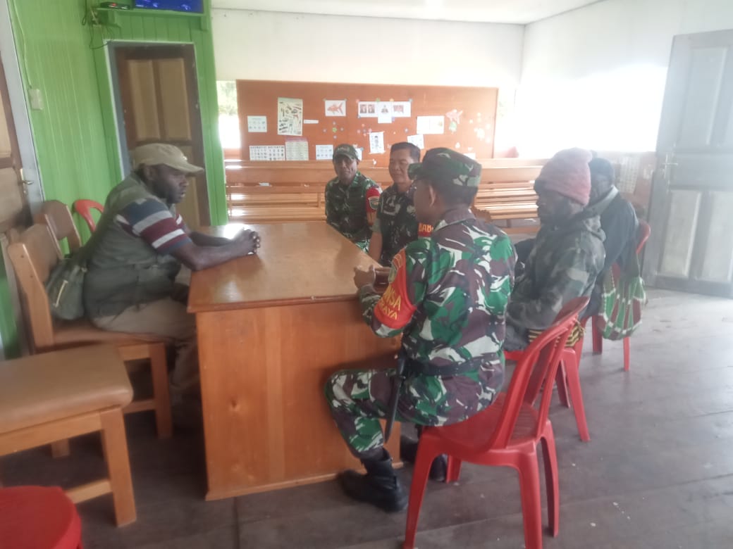 Babinsa Koramil 1703-02/Tigi melakukan sosialisasi Kampung Pancasila di Desa Okomo Kebo , Distrik Tigi , Kabupaten Deiyai,