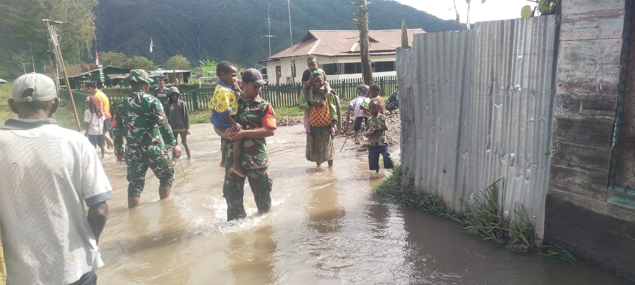 membantu menyebrangkan anak anak sekolah sebagai tangung jawab seorang Babinsa yang ada di desa binaan, Babinsa Koramil 1703-03/Obano Koptu Jacky A Rompas, ikut serta dalam membantu menyebrangkan anak anak sekolah telah terjadi paskah banjir. di Kampung Obano, Distrik Paniai Barat, Kabupaten Paniai, Prov. Papua Tengah. Rabu,(10/09/2025).