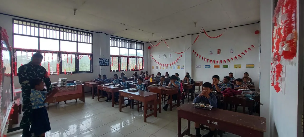 Raja Ampat,PBD-Babinsa Koramil 1805-01/Waisai Serma Dirman Bersama melaksanakan monitoring dan pendampingan pendistribusian makan bergizi gratis kepada Siswa- Siswi SD Santa Maria Raja Ampat yg berada di Waisai kota Kab.Raja Ampat ,Rabu(29/10/2025).