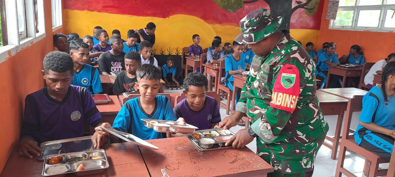 Babinsa Koramil 1805-01/Waisai Serka Ambrin dam menyampaikan pendistribusian dan pemberian makanan bergizi ini dilakukan oleh Badan Gizi Nasional (BGN)