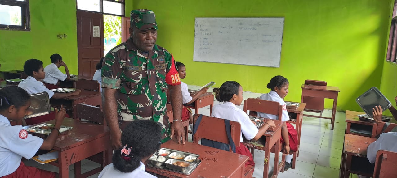 Babinsa Koramil 1805-01/Waisai Serma petrus Rumbiak menyampaikan pendistribusian dan pemberian makanan bergizi ini dilakukan oleh Badan Gizi Nasional (BGN)