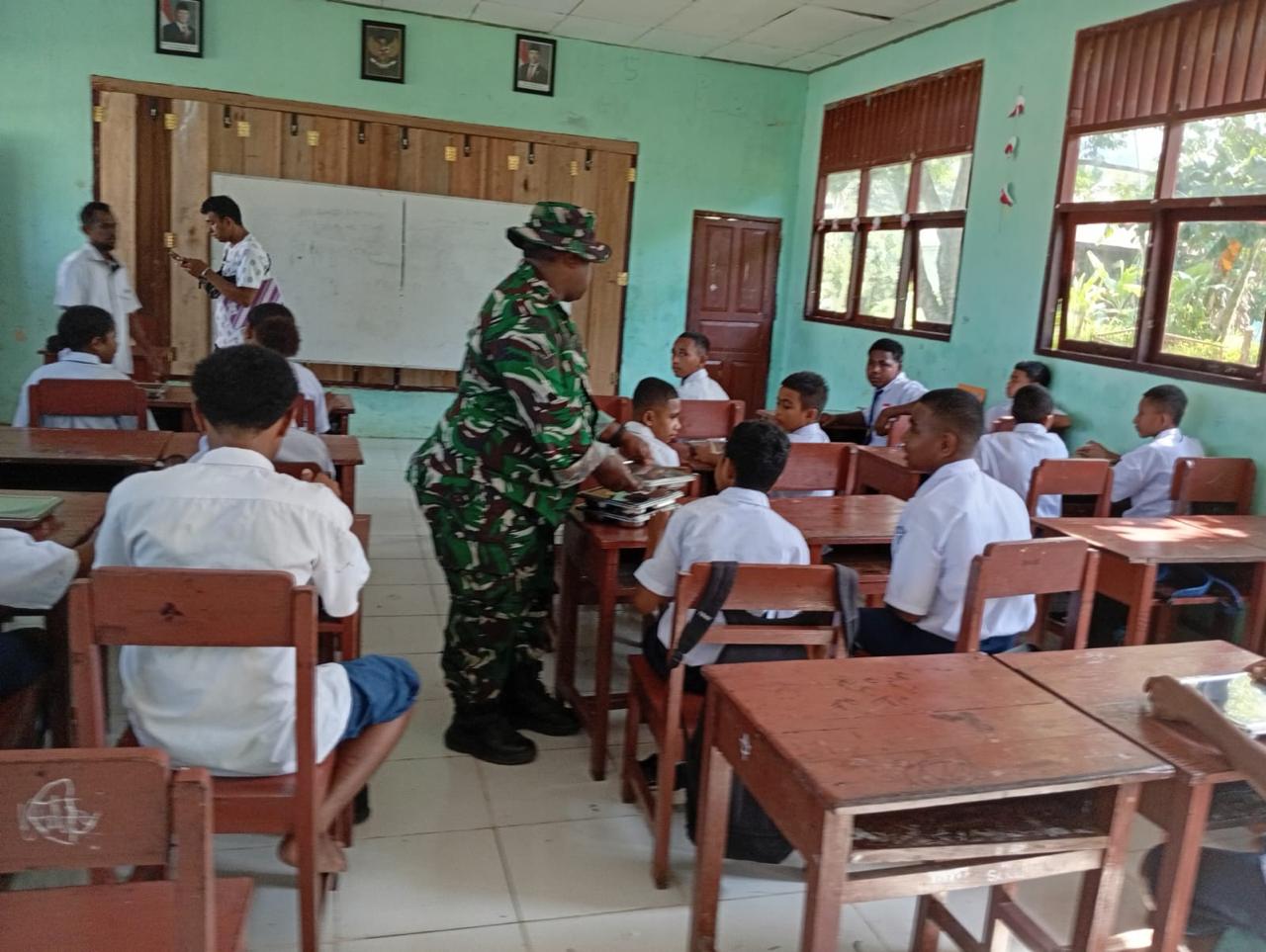 Raja Ampat,PBD-Babinsa Koramil 1805-01/Waisai Serka Ambrin dam Bersama melaksanakan monitoring dan pendampingan pendistribusian makan bergizi gratis kepada Siswa- Siswi SD YPK Alfa Omega yg berada di Waisai kota Kab.Raja Ampat ,Rabu (30/04/2025).