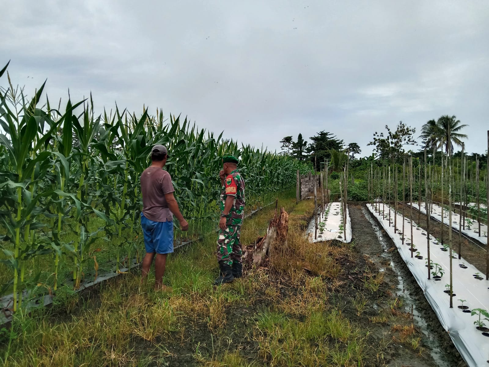 Guna meyakinkan ketahanan pangan di wilayah binaan Babinsa Koramil 1807-05 Moswaren melaksanakan komunikasi sosial (Komsos) bersama Petani Jagung di kampung Bumiajo distrik moswaren kab Sorong Selatan Minggu 13 April 2025.