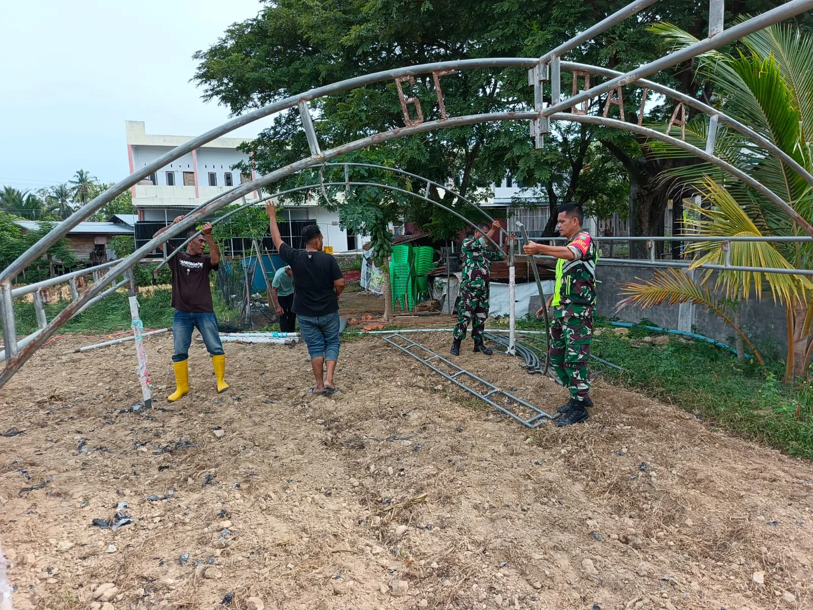 Sejak pagi hari, Babinsa bersama warga bahu-membahu mempersiapkan dan mendirikan tenda sebagai sarana pendukung pelaksanaan hajatan, sehingga dapat berjalan tertib, aman, dan lancar.