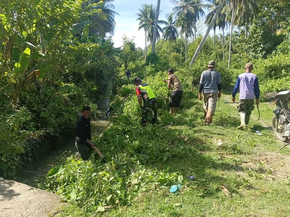 PIDIE — Kepedulian terhadap kebersihan lingkungan dan kelancaran saluran air terus ditingkatkan melalui kegiatan gotong royong. Babinsa Koramil 26/Grong-Grong Kodim 0102/Pidie bersama masyarakat Desa Nicah, Kecamatan Grong-Grong, Kabupaten Pidie, melaksanakan kegiatan pembersihan saluran irigasi, Sabtu (31/01/2026).