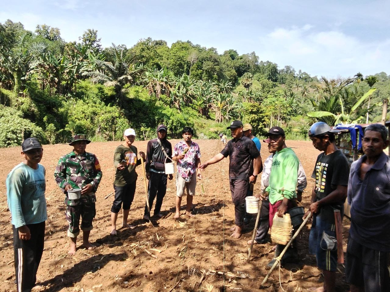 SINJAI – Dalam upaya mendukung ketahanan pangan lokal, Babinsa Desa Lembang Lohe Pos Ramil 1424-05/Tellulimpoe, Serda Muh. Nasir, melaksanakan pendampingan penanaman padi gogo di lahan milik petani Bapak Syamsir, anggota Kelompok Tani Sejahtera Mandiripada lahan kering seluas 0,45 hektare di Dusun Tippulue, Desa Lembang Lohe, Kecamatan Tellulimpoe, Kabupaten Sinjai, Jumat (25/04/2025)