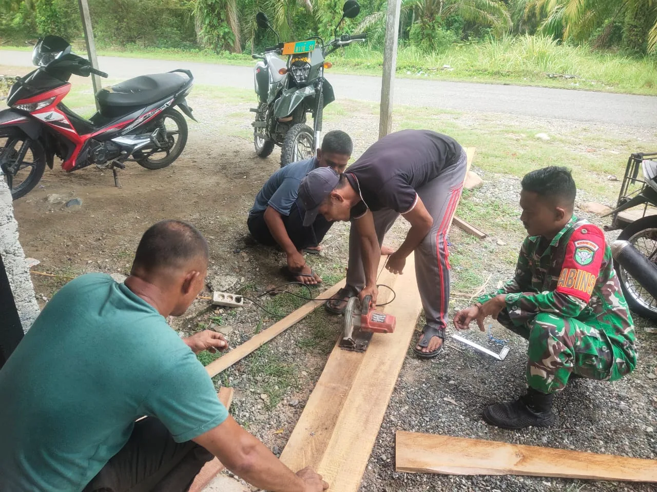 Babinsa Pos ramil Tadu Raya Serda syafrizal melaksanakan giat komunikasi sosial bersama masyarakat di wilayah binaannya di Desa Babah dua Kecamatan Tadu Raya Kabupaten Nagan Raya, minggu (16/nov/2025)