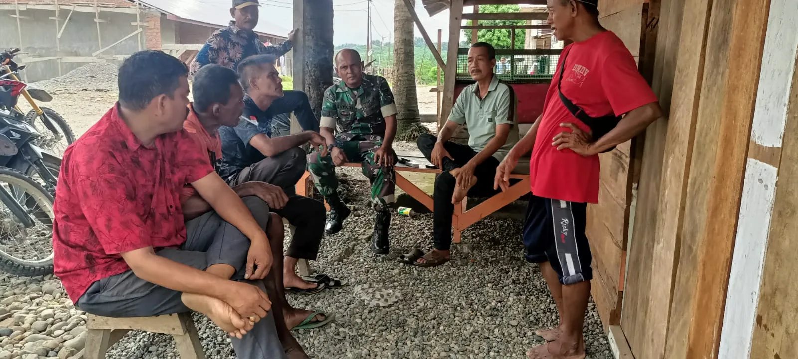 Babinsa Pos Ramil Tadu Raya Kodim 0116/Nara Sertu Evendi melaksanakan komsos dengan warga masyarakat di wilayah binaan di Desa Babah Rot Kec.Tadu Raya Kab.Nagan Raya