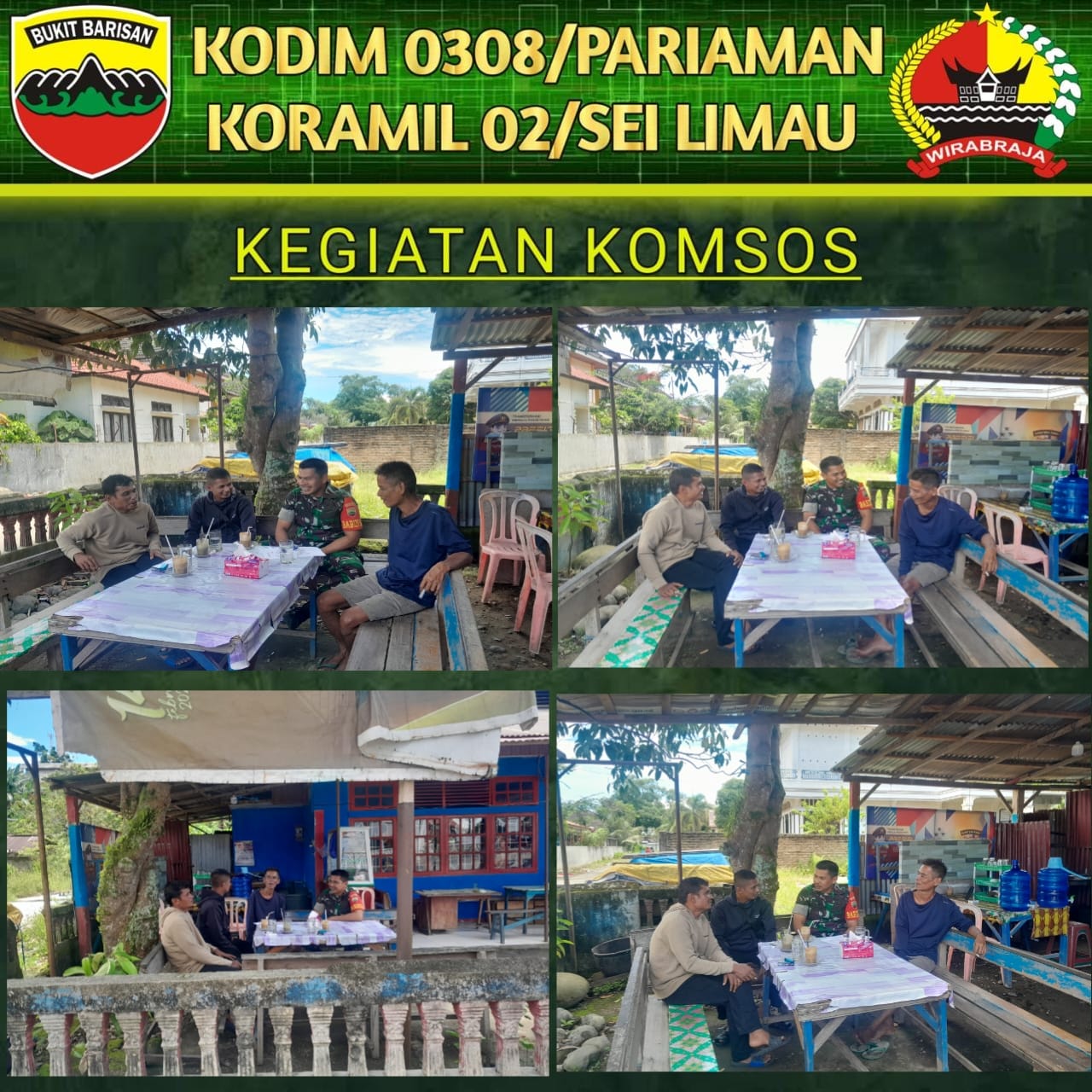Komsos yang dilakukan tersebut bertujuan untuk menjalin silaturahmi serta kebersamaan yang baik dengan warga, sehingga tercipta Kemanunggalan TNI dengan Rakyat khususnya Babinsa dengan masyarakat wilayah binaan, terutama mitra karib”