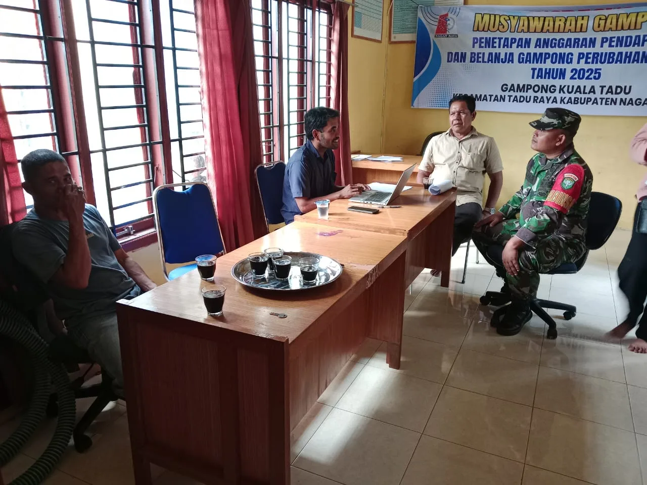 Babinsa Posramil Tadu Raya, Kopda Zulhadi melaksanakan Komsos dengan masyarakat di Desa Kuala Tadu Kec.Tadu Raya, Kab. Nagan Raya, Kamis (25/12/2025).