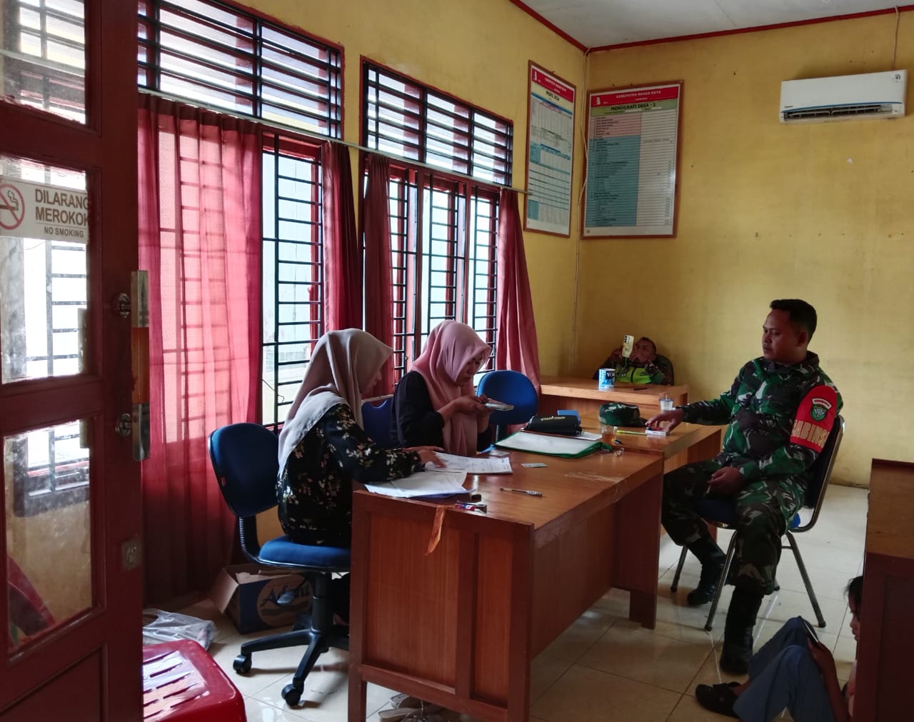 Nagan Raya, untuk meningkatkan Silahturahmi yang baik dengan mitra karip di kantor desa binaan Kopda Zulhadi Babinsa Posramil Taduraya Kodim 0116 Nara melaksanakan Komsos bersama Aparatur desa binaan di desa Kuala Tadu Kecamatan Taduraya Kabupaten Nagan Raya, Rabu (30/07/2025).