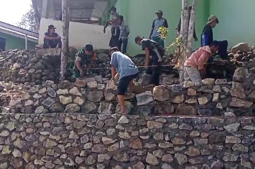 Sinjai . Babinsa Desa Pattongko Koramil 1424-03/Sinjai Tengah, Serda Asri Bahe, bersama Kepala Dusun dan masyarakat setempat melaksanakan kerja bakti pembangunan talud atau dinding penahan tanah di sekitar area Masjid yang terletak di Dusun Manubbu, Desa Pattongko, Kecamatan Sinjai Tengah, pada Jumat(11/07/2025)