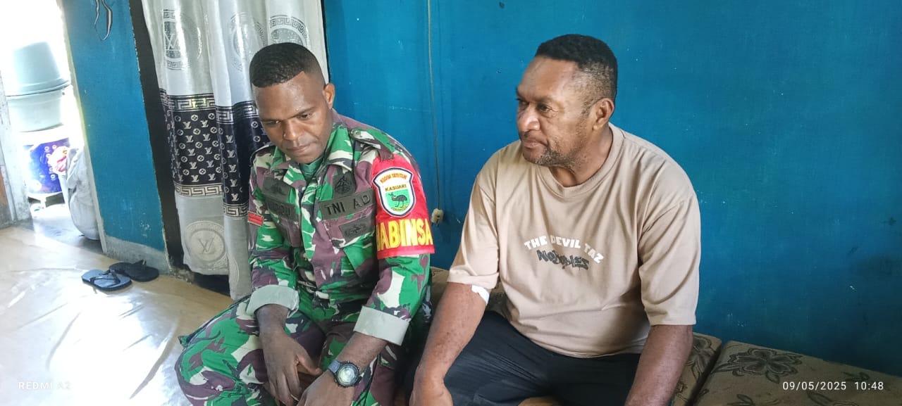 Babinsa Koramil 1811/01 Wasior, Pratu Riski Nadap Nunaki, menunjukkan komitmen kuat dalam memperkuat sinergitas antara TNI dan masyarakat dengan melaksanakan anjangsana di Kampung Tandia, Distrik Rasiei, Kabupaten Teluk Wondama, pada 9 Mei 2025.
