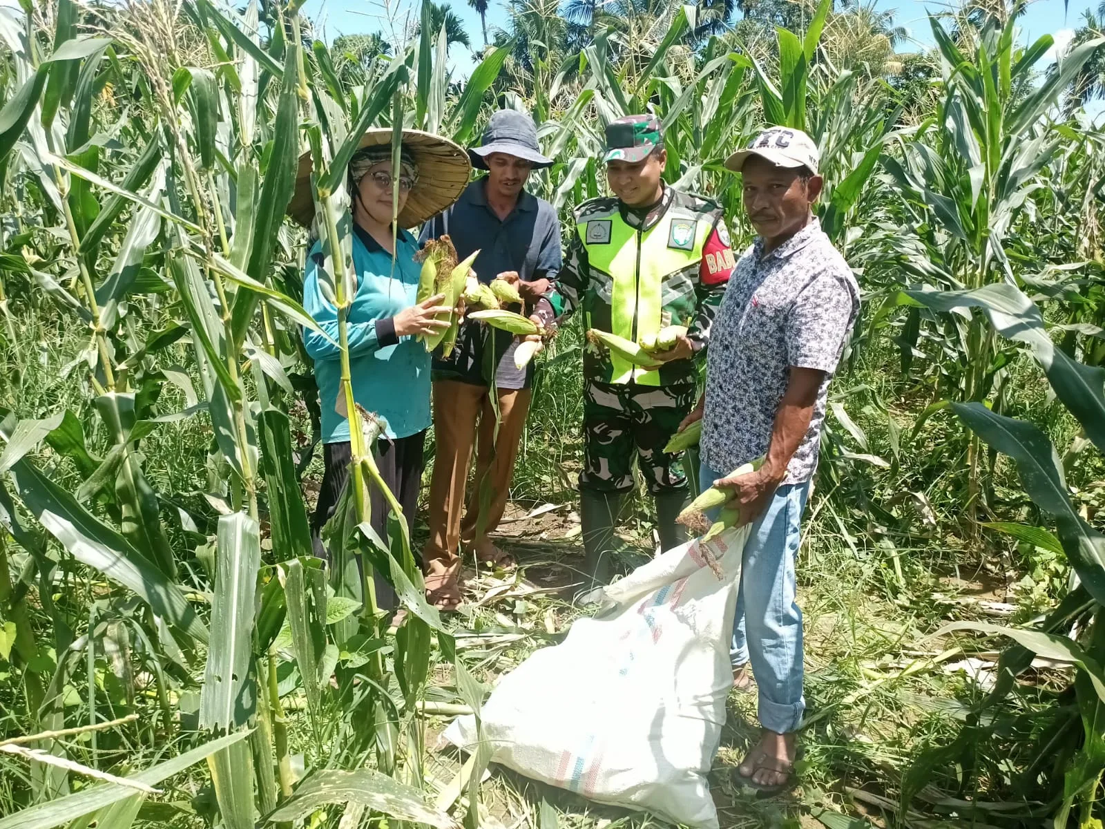 Babinsa (Bintara Pembina Desa) aktif mendampingi kelompok tani (pok tani) dalam memanen jagung untuk meningkatkan produksi pangan dan memperkuat ketahanan pangan nasional.