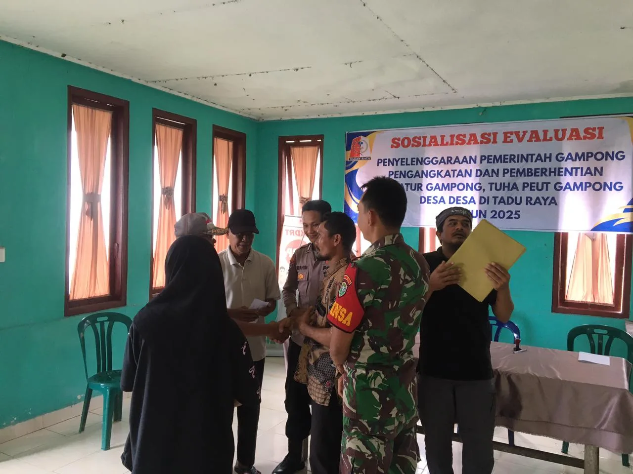 Nagan Raya – Babinsa Desa Sumber Daya Posramil Tadu Raya, Kodim 0116/Nara, Sertu Khairul Anam mendampingi pemerintah Desa mediasi permasalahan perselisihan warga antara Bapak Masrukin dengan Bapak Usman Warga Desa Sumber Daya, bertempat di Aula Desa Sumber Daya, Kecamatan Tadu Raya, Kabupaten Nagan Raya, Sabtu (25/10/2025).