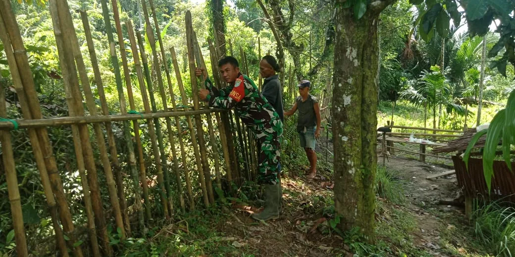 Babinsa Posramil Teupah Barat Bantu Warga Perbaikan Pagar Kebun