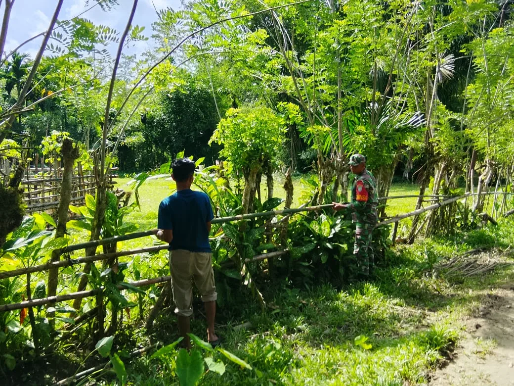 Simeulue – Posramil Teupah Barat, Kodim 0115/Simeulue, Korem 012/Teuku Umar. Babinsa Koptu Ahmad Rison dan Bhabinkamtibmas (Bhayangkara Pembina Keamanan Ketertiban Masyarakat) melakukan pengecekan pagar sawah sebagai bagian dari tugas pembinaan Di Desa Salur Latin, Kecamatan Teupah Barat, Kabupaten Simeulue. Minggu (04/01/2026).