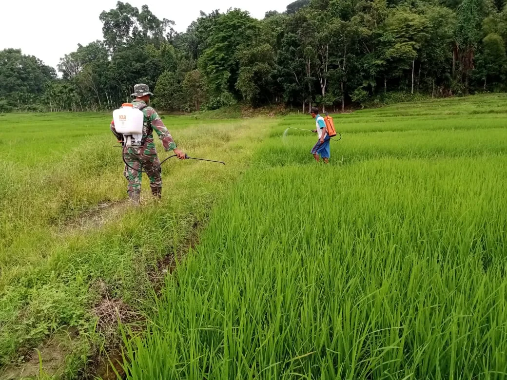 Ahmad selaku pemilik lahan mengucapkan terimakasih, kepada Babinsa yang sudah melakukan pendampingan sekaligus membantu dalam penyemprotan hama di sawah miliknya.