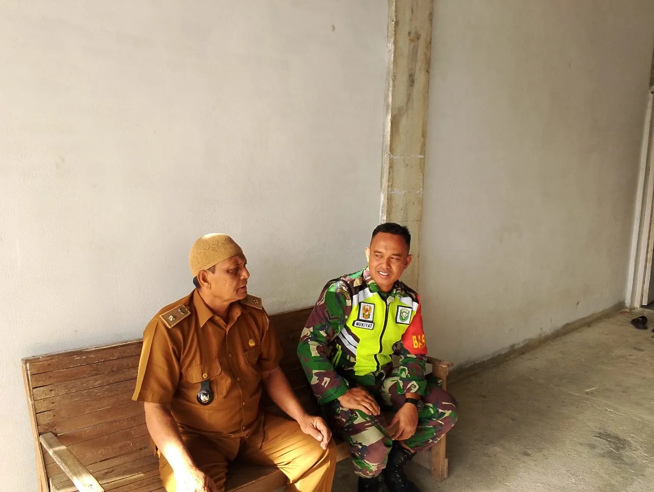Demi menjaga hubungan yang harmonis antara Babinsa dengan Keuchik, perangkat desa, tokoh masyarakat, tokoh agama dan seluruh komponen masyarakat yang ada di wilayah desa binaannya. Serda Mukiyat secara rutin mendatangi dan berkomunikasi dengan tokoh-tokoh tersebut.