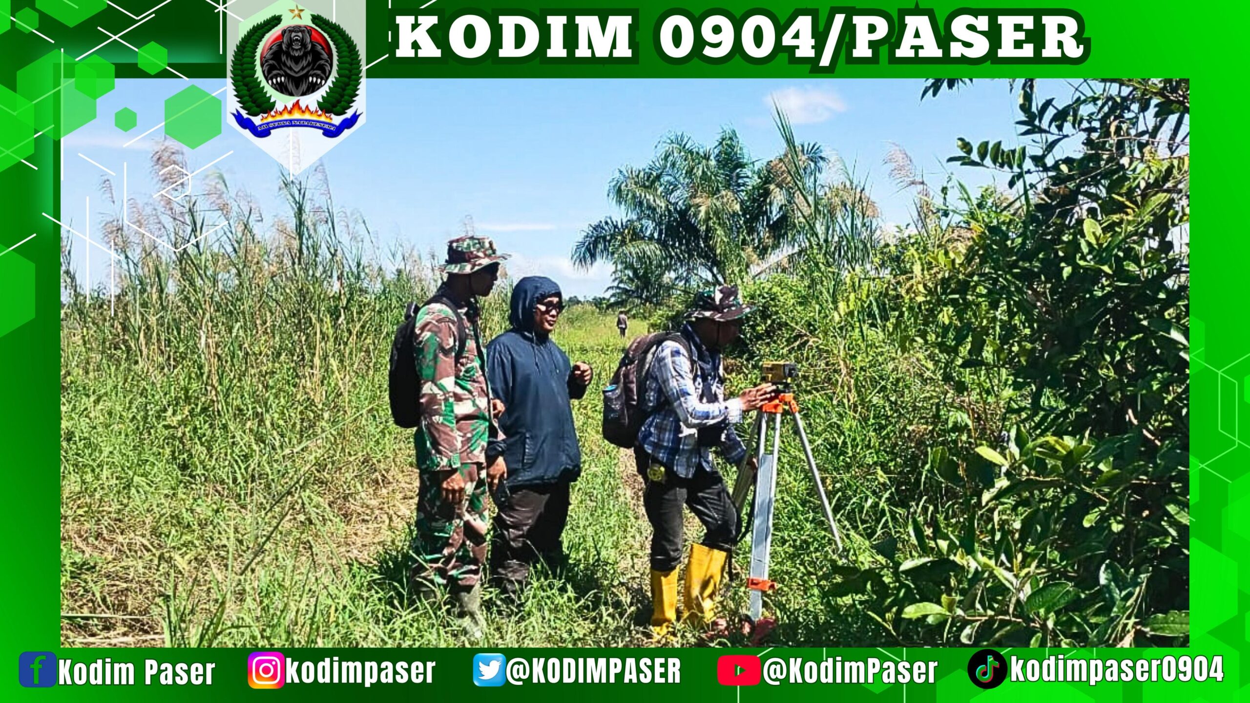 Kodim 0904/Psr, Korem 091/ASN, Kodam VI/Mlw – Babinsa Desa Sebakung, Svertu Taufik Kurohman mengikuti kegiatan survey dan pengukuran kontruksi saluran tersier oleh konsultan dalam perencanaan pembangunan sarana dan prasarana pengairan di Desa Sebakung, Kec. Longkali, Kab. Paser. Sabtu (31/05/2025)