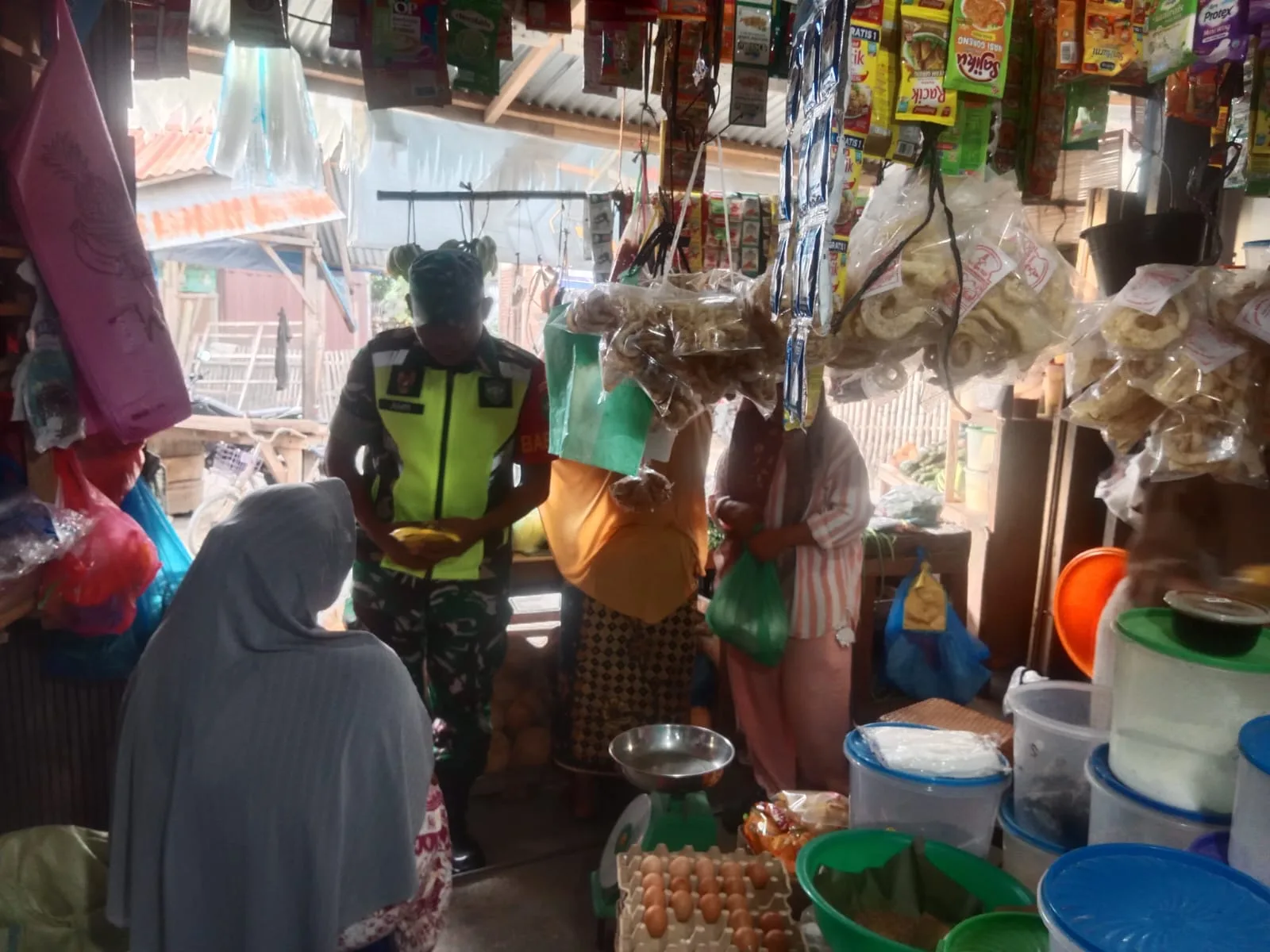 “Menjelang Idul Fitri biasanya terjadi lonjakan harga beberapa komoditas. Karena itu, kami turun langsung ke pasar untuk memantau perkembangan harga sekaligus memastikan distribusi sembako berjalan lancar,” ujar Serda Amri di sela kegiatan.