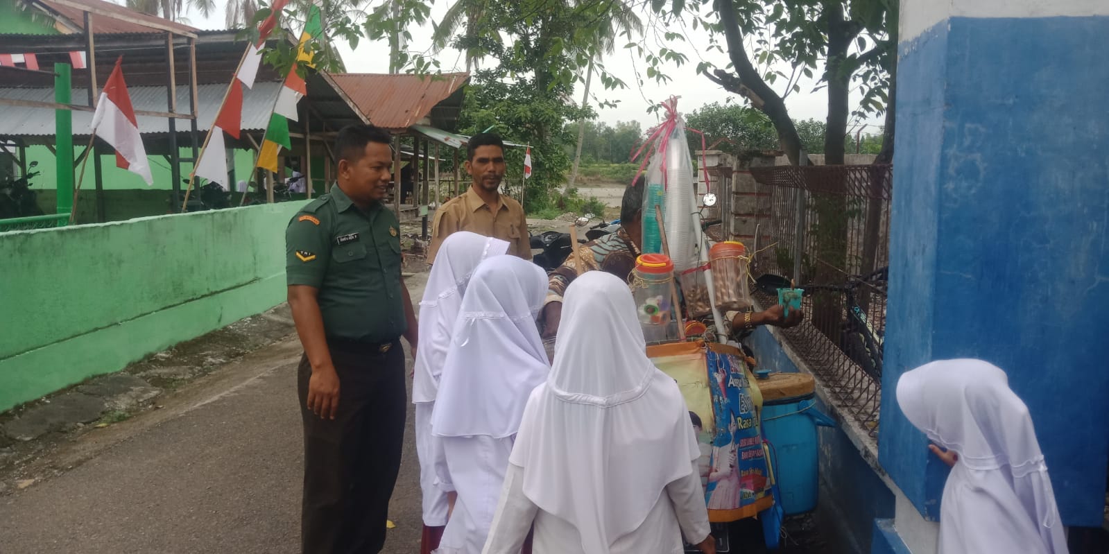 Pidie – Dalam upaya menjaga kesehatan dan keselamatan konsumsi anak-anak sekolah, Babinsa Koramil 15/Tiro Kodim 0102/Pidie, Serda Banta Heri Purnama, melaksanakan komunikasi sosial (komsos) dengan para pedagang yang berjualan di depan SD Negeri Lhok Igeuh, Kecamatan Tiro, Kabupaten Pidie, Selasa (12/08/2025).