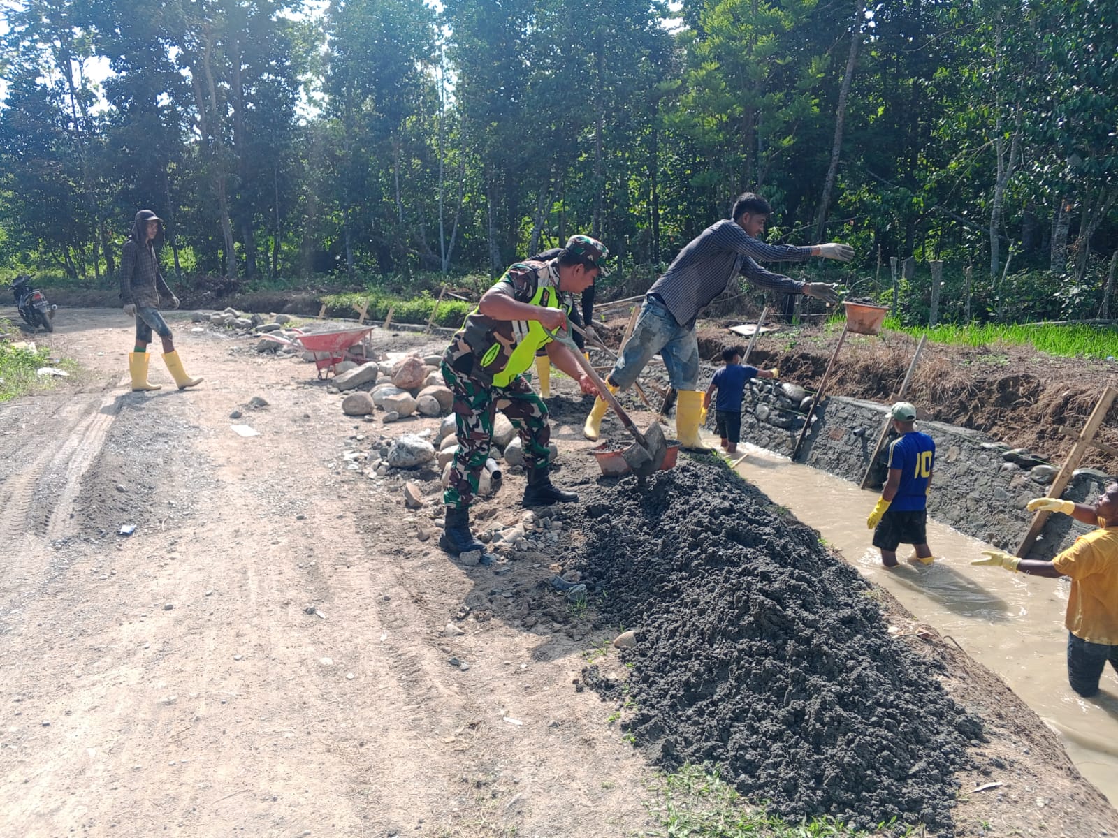 “Kehadiran Babinsa menjadi penyemangat bagi kami. Pembangunan irigasi ini penting supaya sawah kami tidak lagi kekurangan air,” ungkap Kepald petani desa, Zainal.