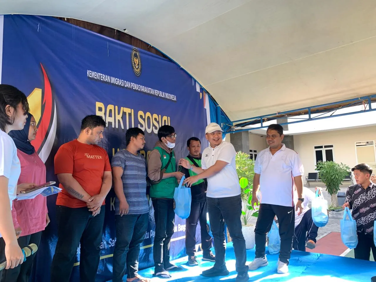Palu, INFO_PAS– Rangkaian peringatan Hari Bakti Kementerian Imigrasi dan Pemasyarakatan (Kemenimipas) ke-1 di Sulawesi Tengah (Sulteng) diisi dengan kebersamaan berbagi dengan kegiatan Bakti Sosial (Baksos) yang dipusatkan di Kantor Imigrasi Kelas I TPI Palu pada Jumat, (15/11/2025). Rumah Tahanan Negara (Rutan) Kelas IIA Palu turut mengambil peran aktif dalam kegiatan yang mengedepankan semangat kepedulian dan sinergi antarinstansi ini.