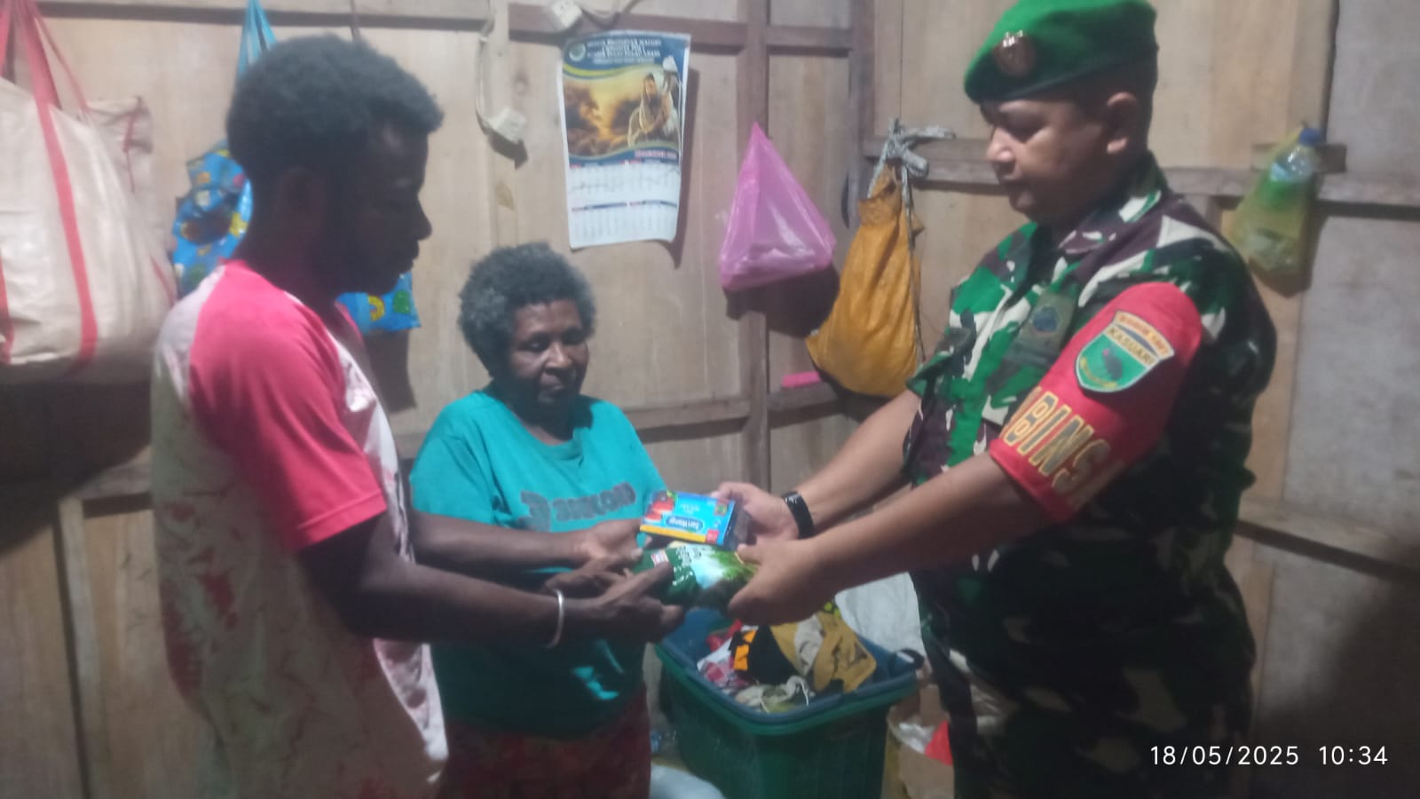 Bintara Pembina Desa (BABINSA) Koramil 1807-01/Teminabuan Kampung kikiso Distrik Teminabuan Kab Sorsel Serda Rifandri melaksanakan kegiatan Komunikasi Sosial (KOMSOS) sekaligus memberikan bantuan sembako kepada warga kurang mampu di kampung binaan. Senin (26/05/2025).