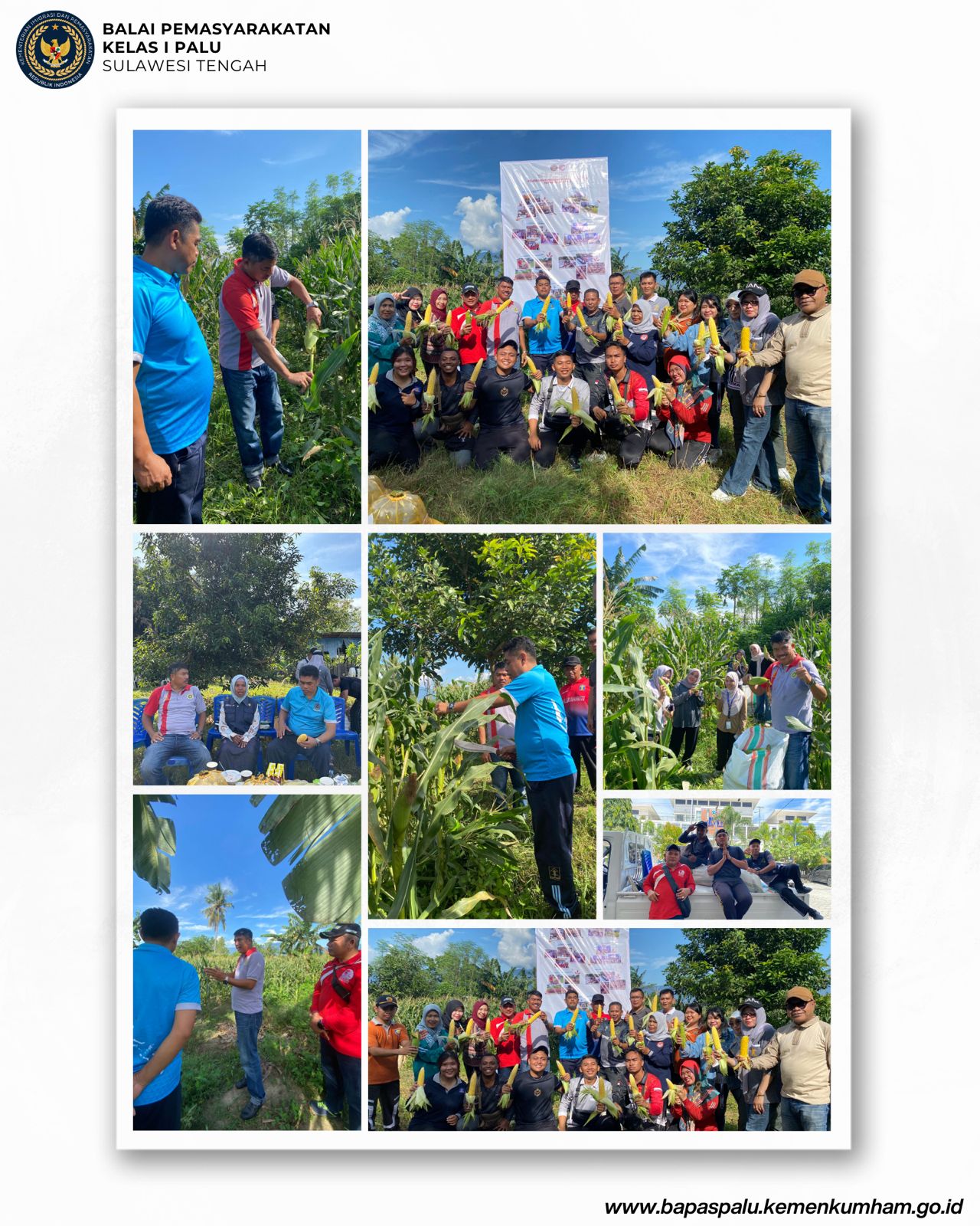 Palu, 9 Mei 2025 – Balai Pemasyarakatan (Bapas) Kelas I Palu sukses melaksanakan kegiatan Panen Jagung Bersama sebagai bagian dari program ketahanan pangan yang merupakan amanah Asta Cita Presiden Republik Indonesia. Kegiatan ini tidak hanya menunjukkan peran aktif Bapas dalam mendukung agenda nasional, tetapi juga mengintegrasikan proses pembimbingan Klien Pemasyarakatan secara produktif dan kolaboratif bersama masyarakat dan kelompok tani.