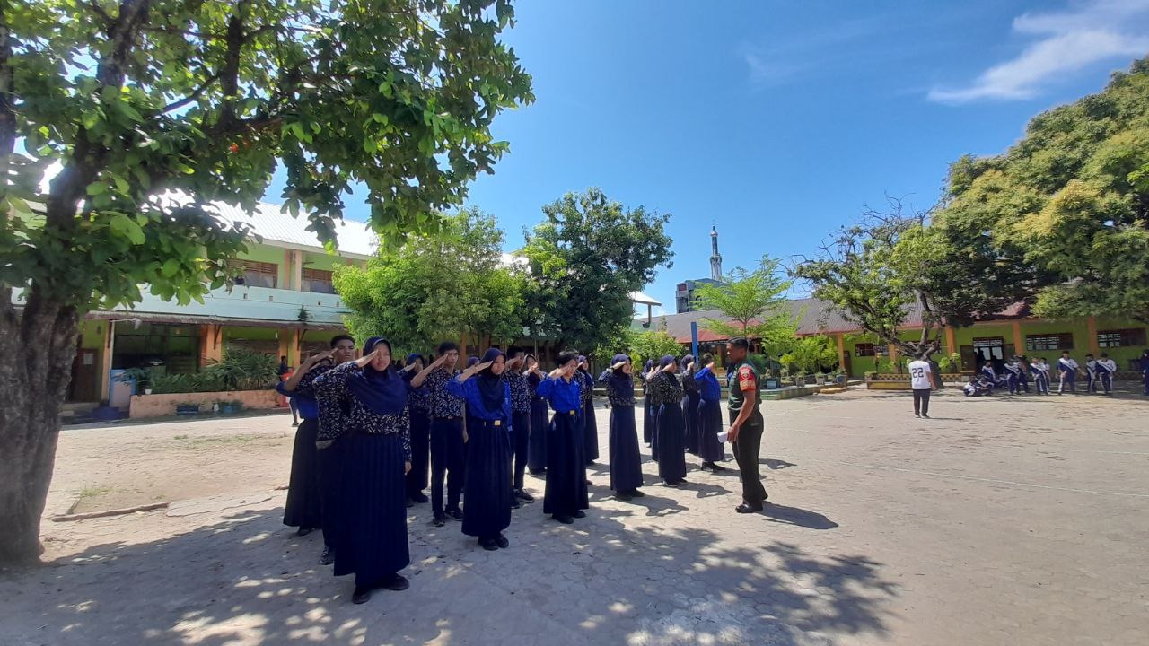 KODIM 1405/PAREPARE – Selain Tugas Pembinaan Desa, Anggota Koramil 1405-01/Ujung Serda Muhammad Ali, juga melaksanakan kegiatan Pembinaan Ketahanan wilayah (Bintahwil) dengan cara memberikan Pelajaran Peraturan Baris Berbaris (PBB), pada Siswa/Siswi UPTD SMP Negeri 1 Parepare, Jl. Karaeng Burane Kelurahan Mallusetasi, Kecamatan Ujung, Kota Parepare. Rabu (04/06/2025)
