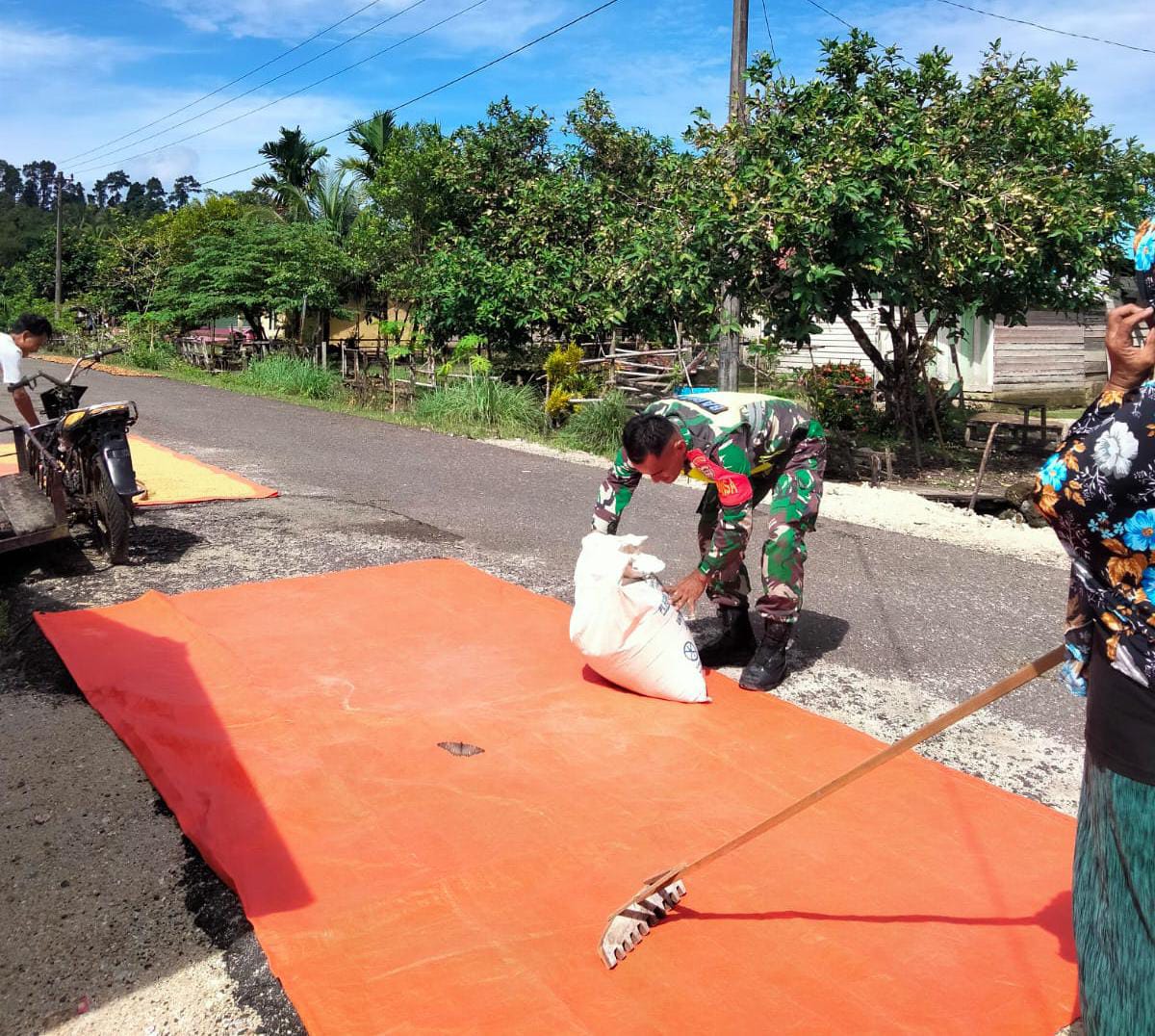Simeulue – Sebagai bentuk kepedulian terhadap warga bina, Babinsa Koramil 08/Alafan Sertu M. Angga Kausar turut membantu warga menjemur padi yang telah dipanen beberapa waktu lalu, bertempat di desa Serafon Kec Alafan Kab. Simeulue, Rabu (07/05/2025).