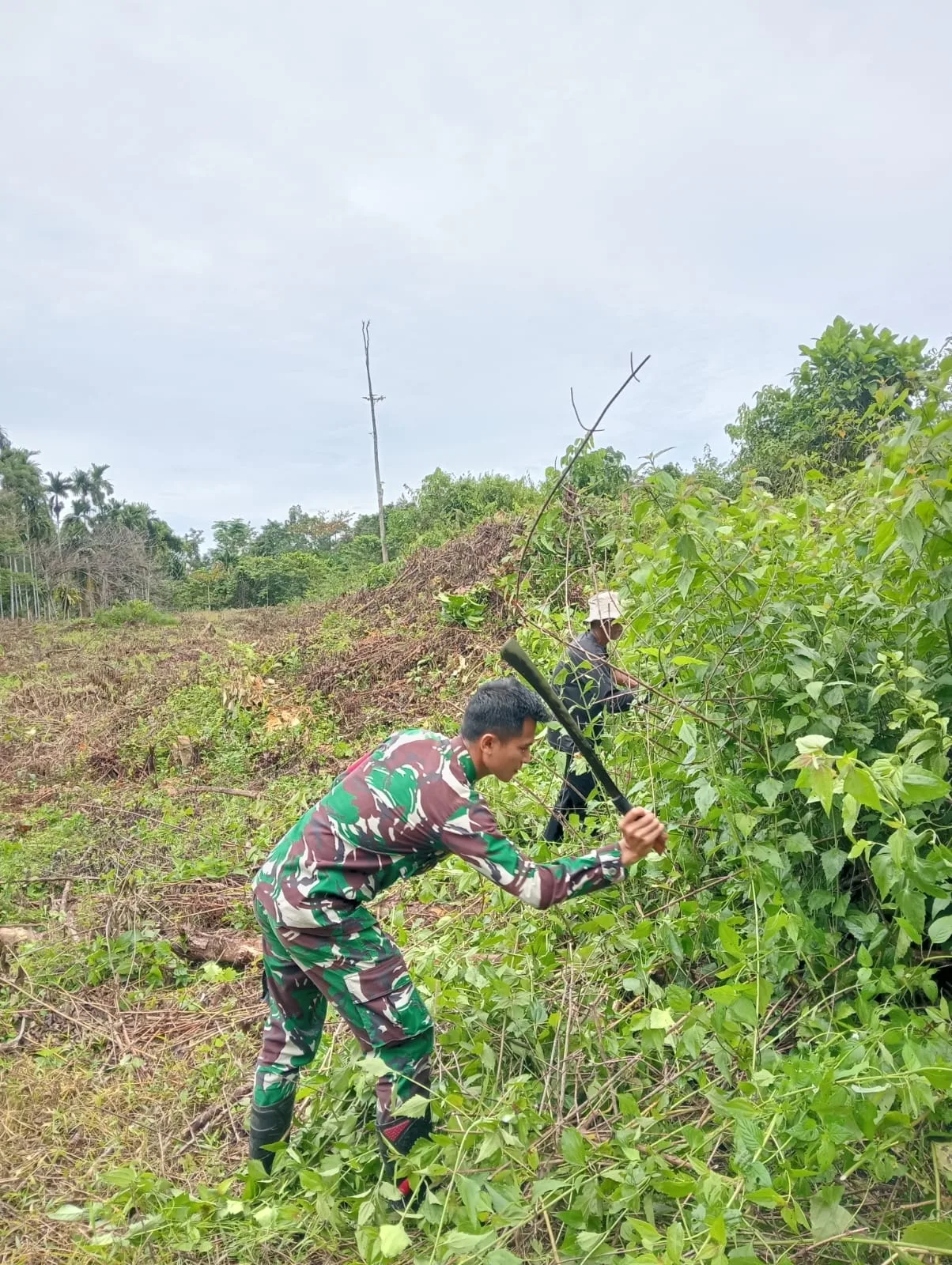 Simeulue – Sertu Joy Dharsa Babinsa Koramil 03/Teupah Selatan, Kodim 0115/Sml, Korem 012/Tu, melaksanakan Gotong Royong Bersama, Babinsa Dan Warga di Desa Kebun Baru, Kecamatan Teupah Tengah Kabupaten Simeulue. Kamis (03/04/2026).