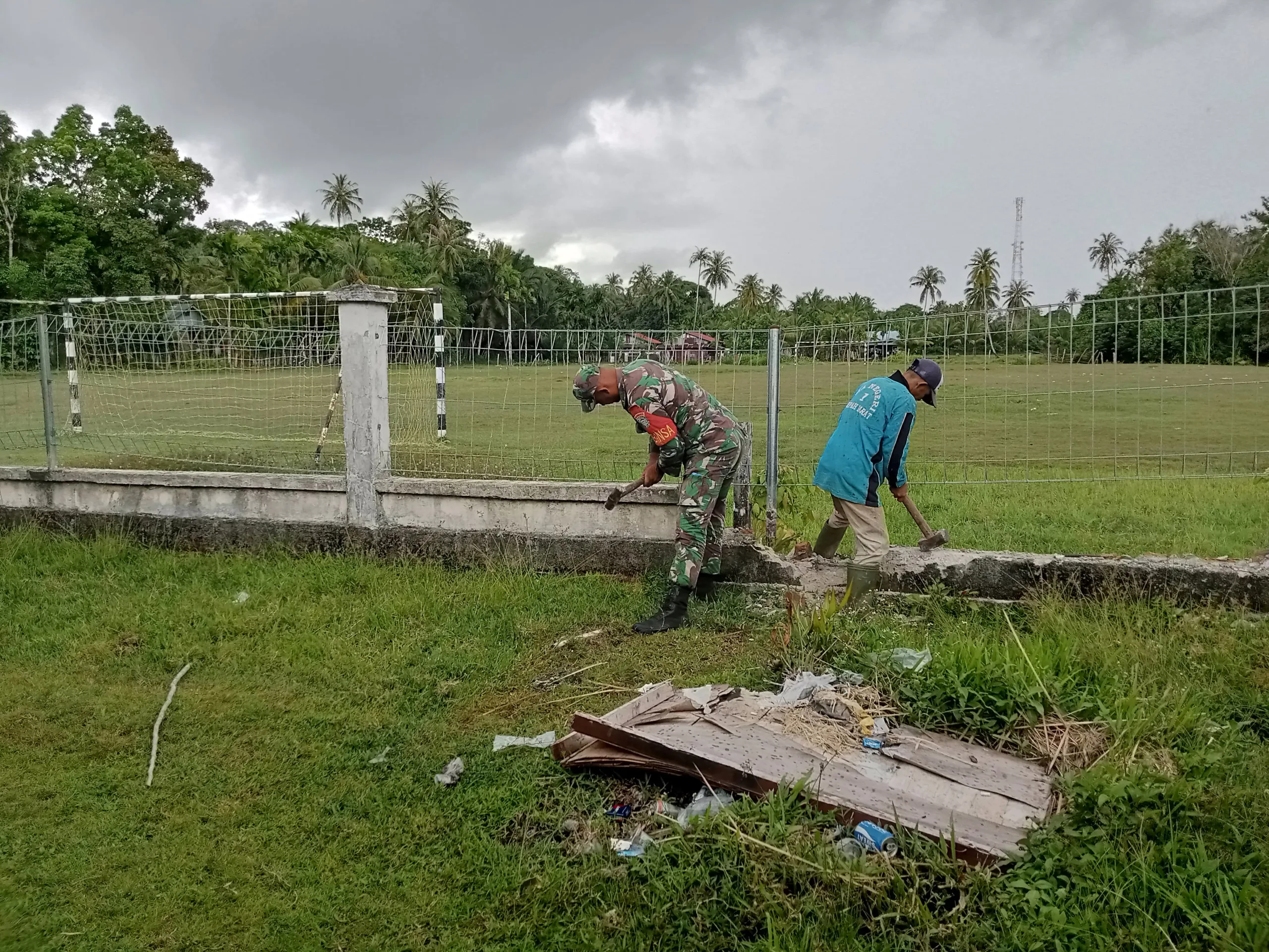 Simeulue – Koptu A. Rison Babinsa Posramil Teupah Barat, Kodim 0115/Sml, Korem 012/Tu, melaksanakan Gotong Royong Bersama, Babinsa Dan Warga di Desa Bulu Hadik, Kecamatan Teluk Dalam, Kabupaten Simeulue. Selasa (14/04/2026).