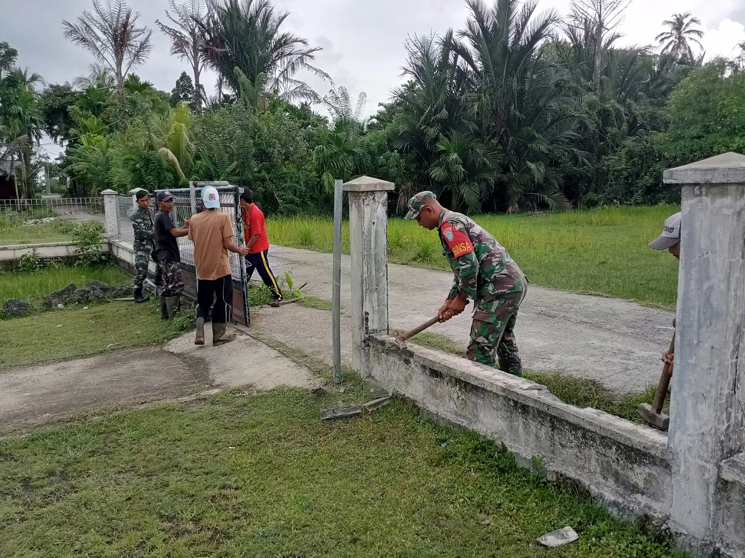 Simeulue – Koptu A. Rison Babinsa Posramil Teupah Barat, Kodim 0115/Sml, Korem 012/Tu, melaksanakan Gotong Royong Bersama, Babinsa Dan Warga di Desa Bulu Hadik, Kecamatan Teluk Dalam, Kabupaten Simeulue. Rabu (01/04/2026).